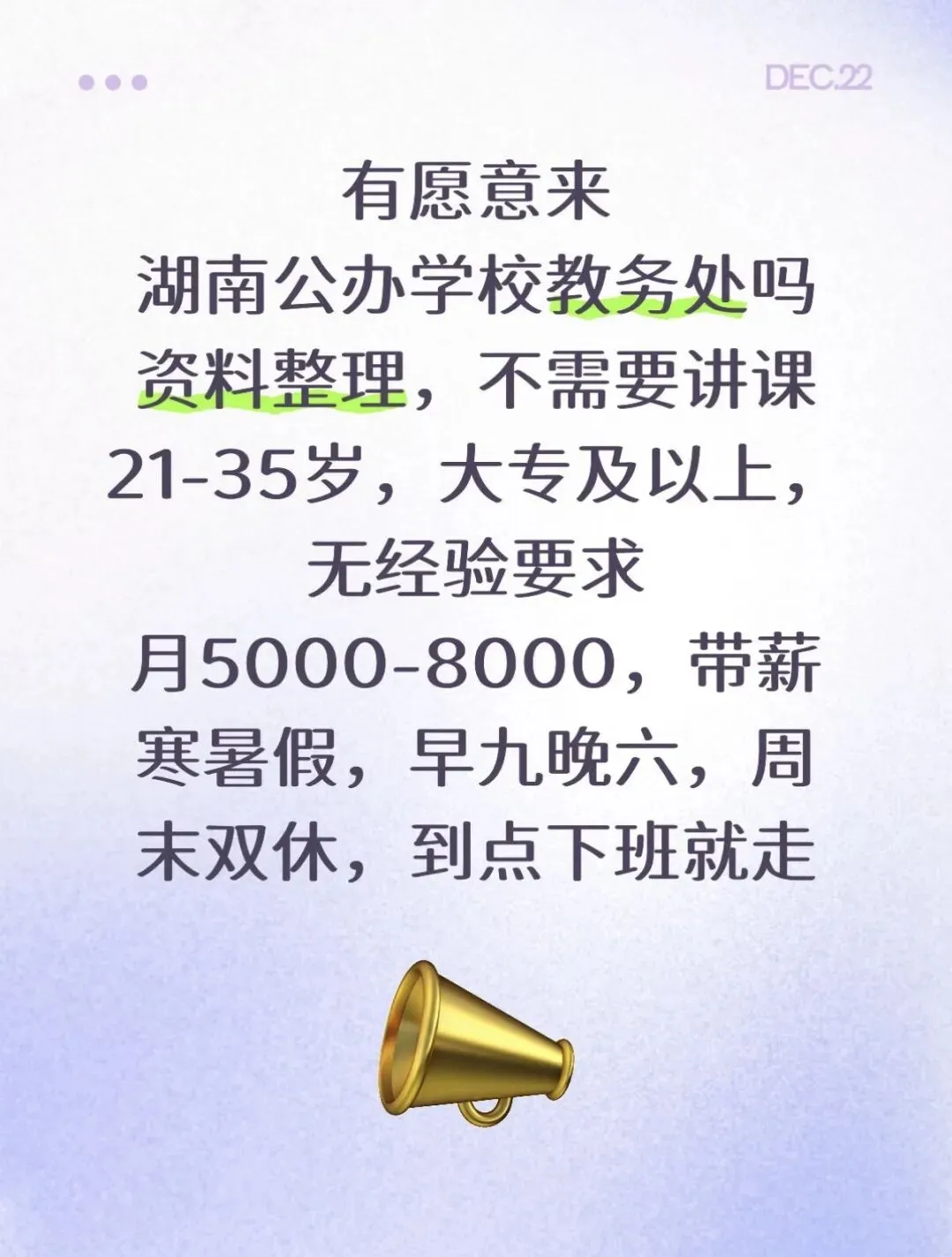 周末双休 带薪寒暑假 到点下班就走