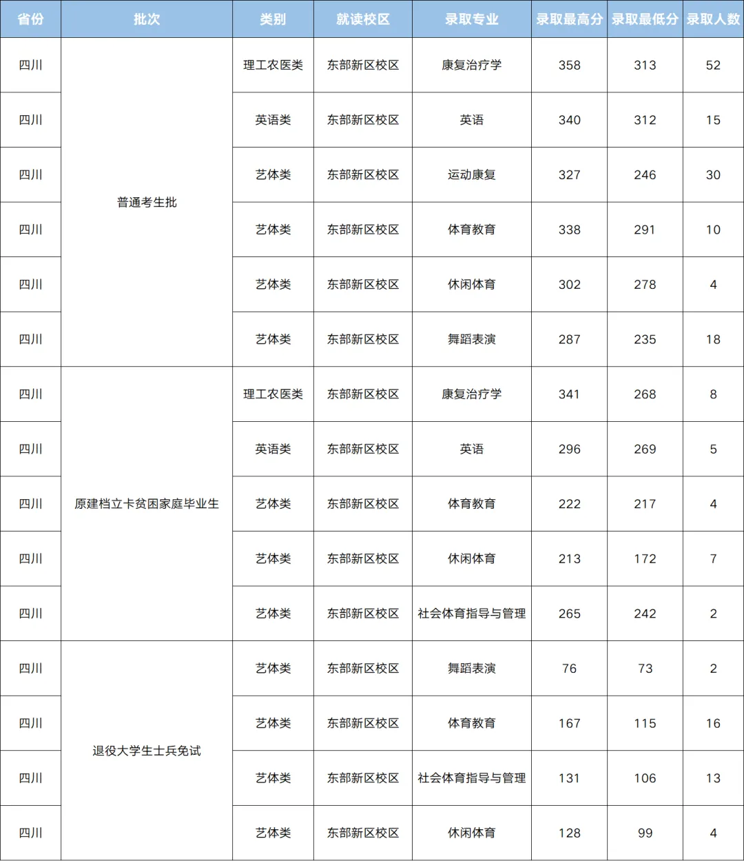 成都体育学院2025年专升本录取分数线: