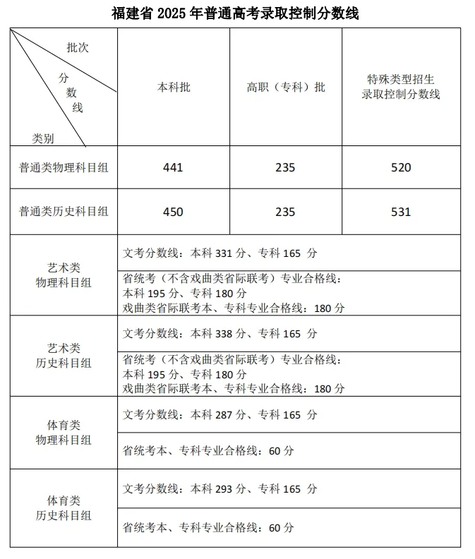 2025年福建省高招切线公布