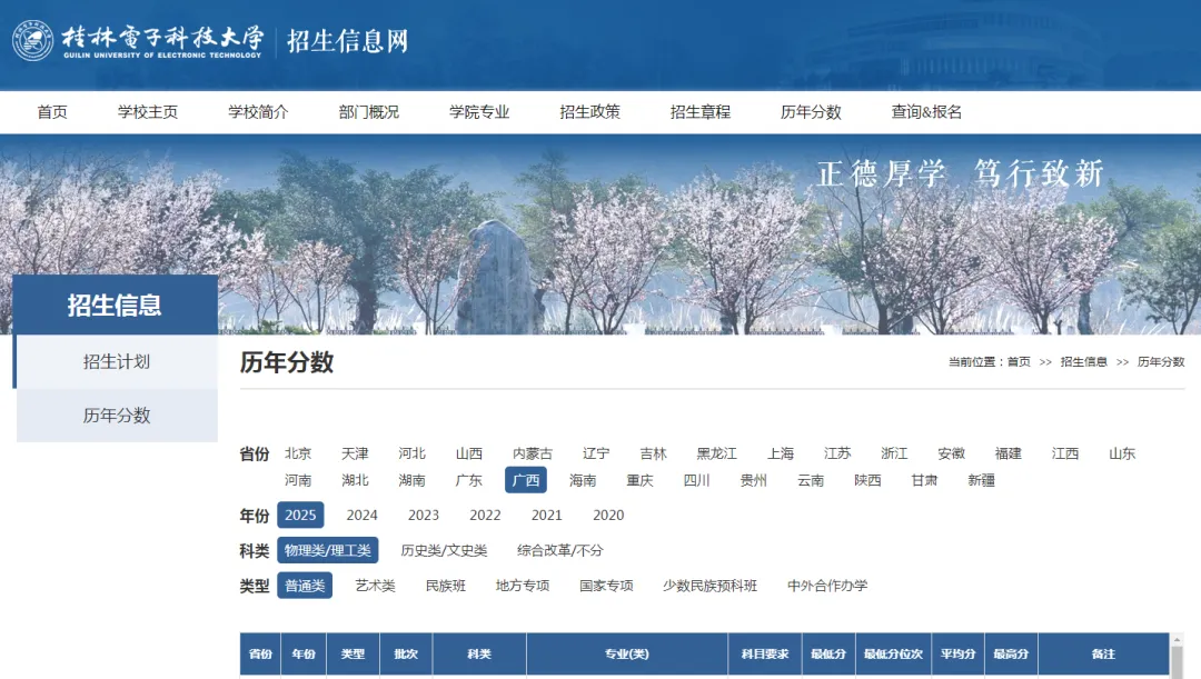 2025年,桂林电子科技大学在广西省招生录取分数线如下: