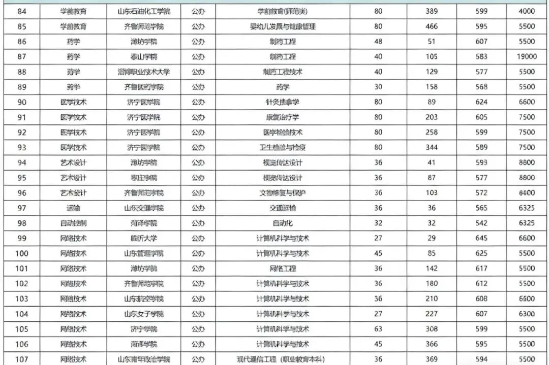 >山东25年春考公办本科录取分数线!
