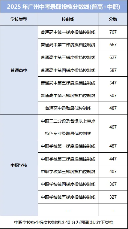 >2025年广州中考录取投档分数线,普通高中+中职学校