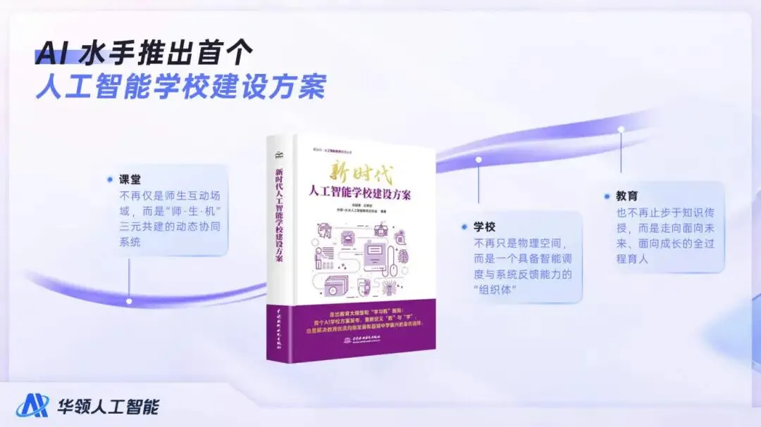 在这一逻辑下,华领人工智能的实践路径围绕学校的整体运行展开。人工智能教育学校建设方案以“1-2-3-4-5 系统模型”为框架,构建系统性解决方案,推动人工智能型校长与智能型教师两支队伍建设,并在课程建设、课堂改革与教研支持三个维度同步发力,回应学生、家长、教师与社会的多方需求,最终指向五育融合的发展目标。