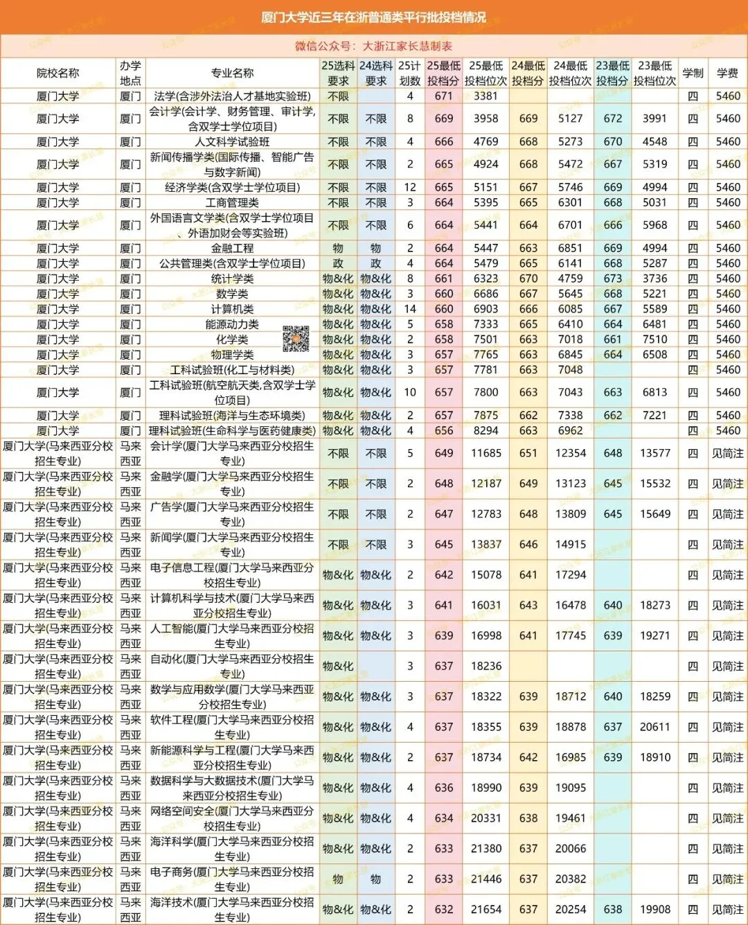 根据2025最新的平行投档数据,厦门大学2025年在浙江
