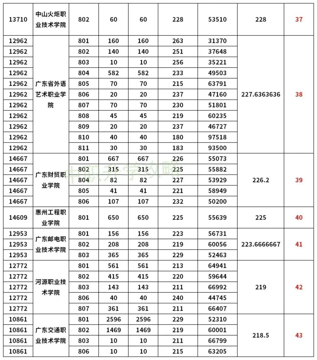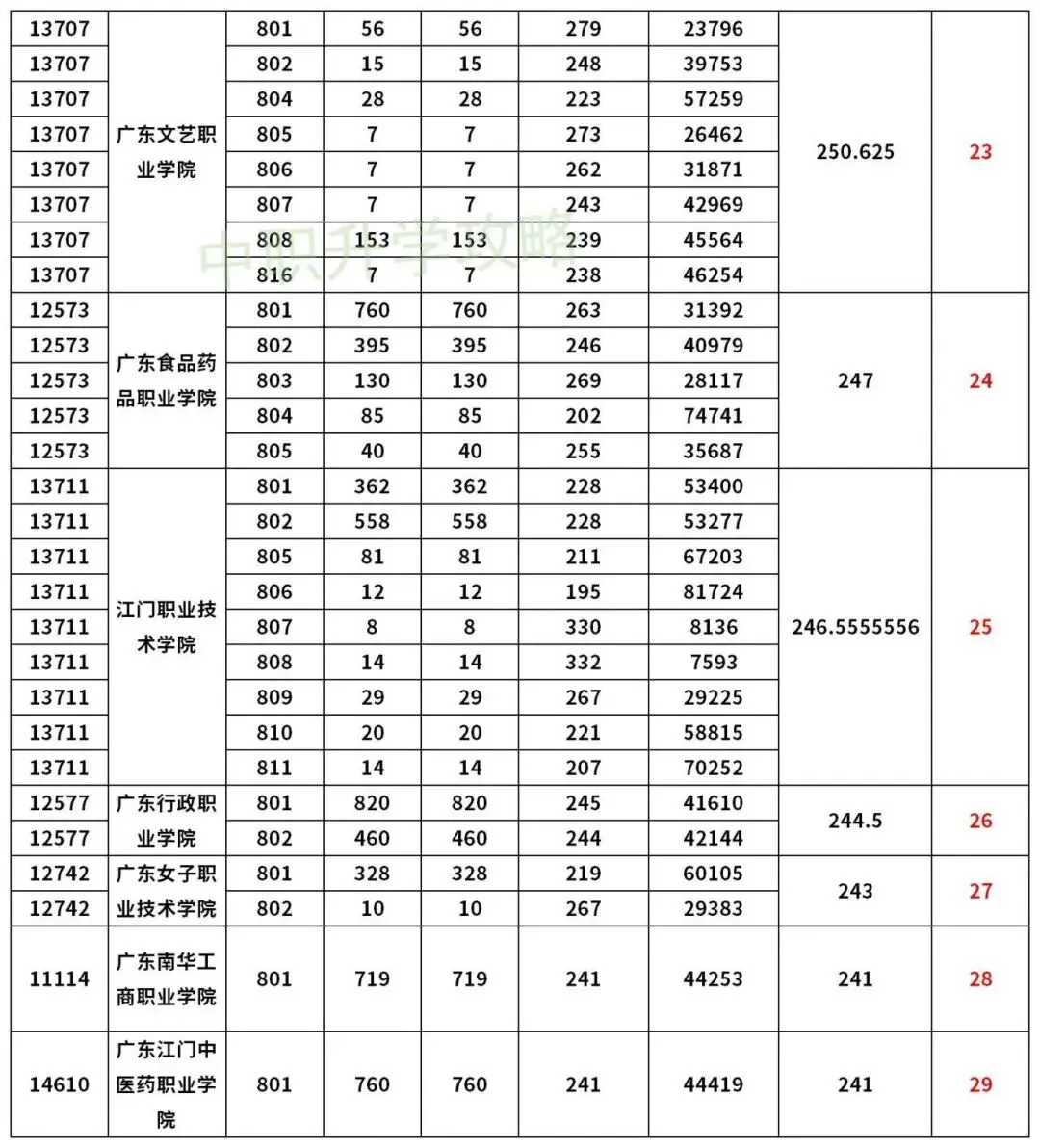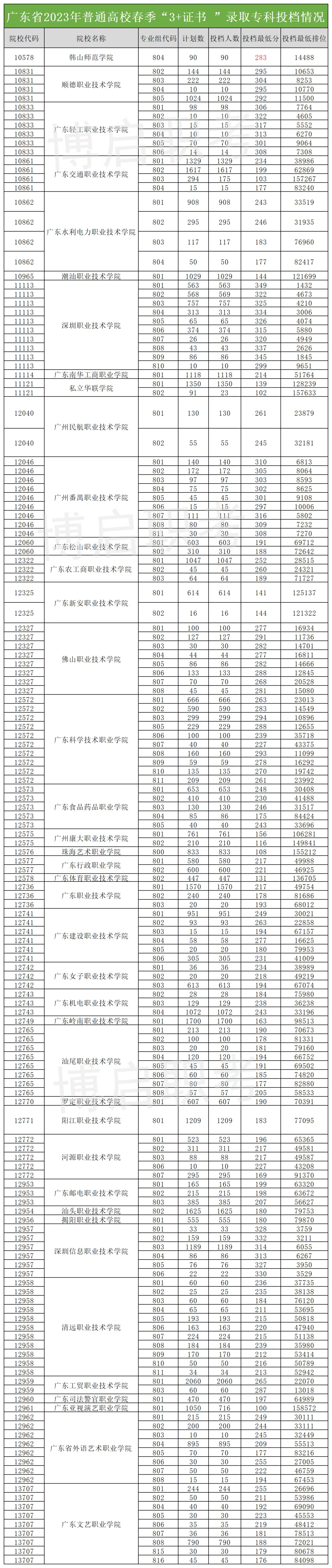 广东省2023年普通高校春季分类考试(“3+专业技能课程证书”)招生录取最低分数线如下: