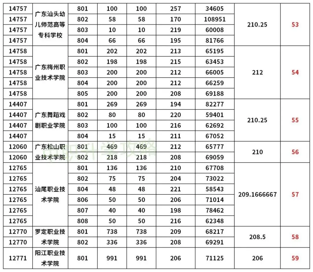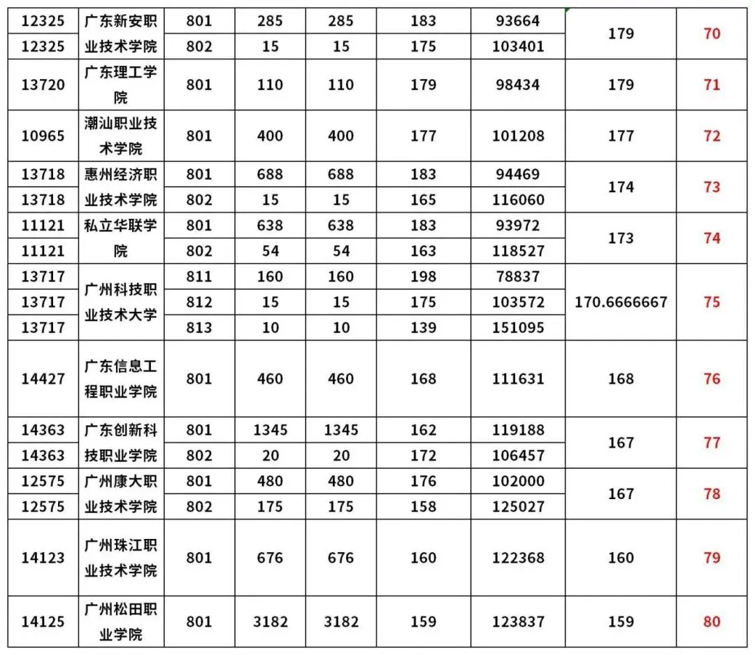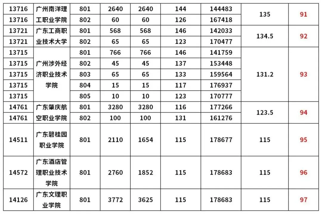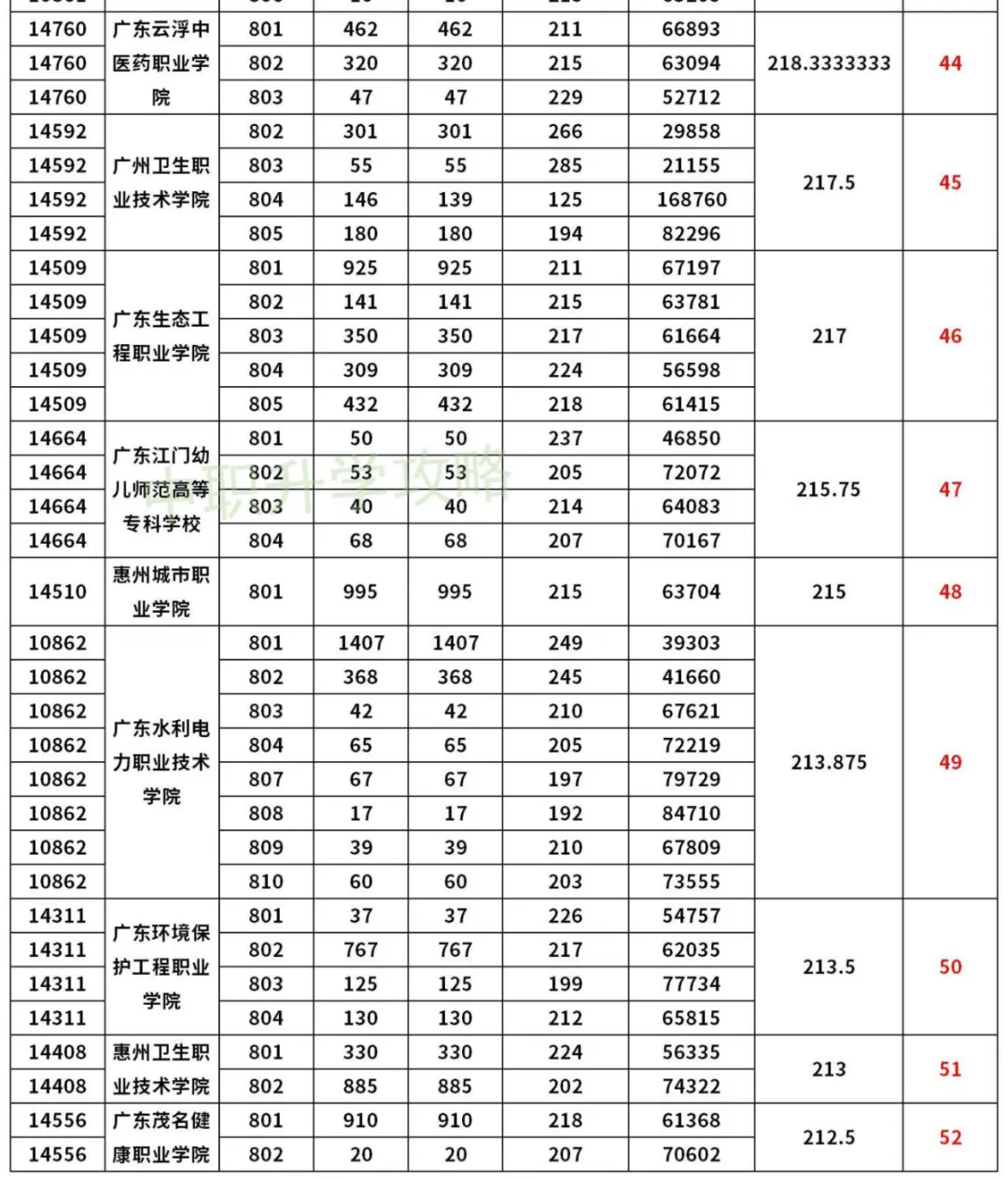 广东省2023年普通高校春季分类考试(“3+专业技能课程证书”)招生录取最低分数线如下: