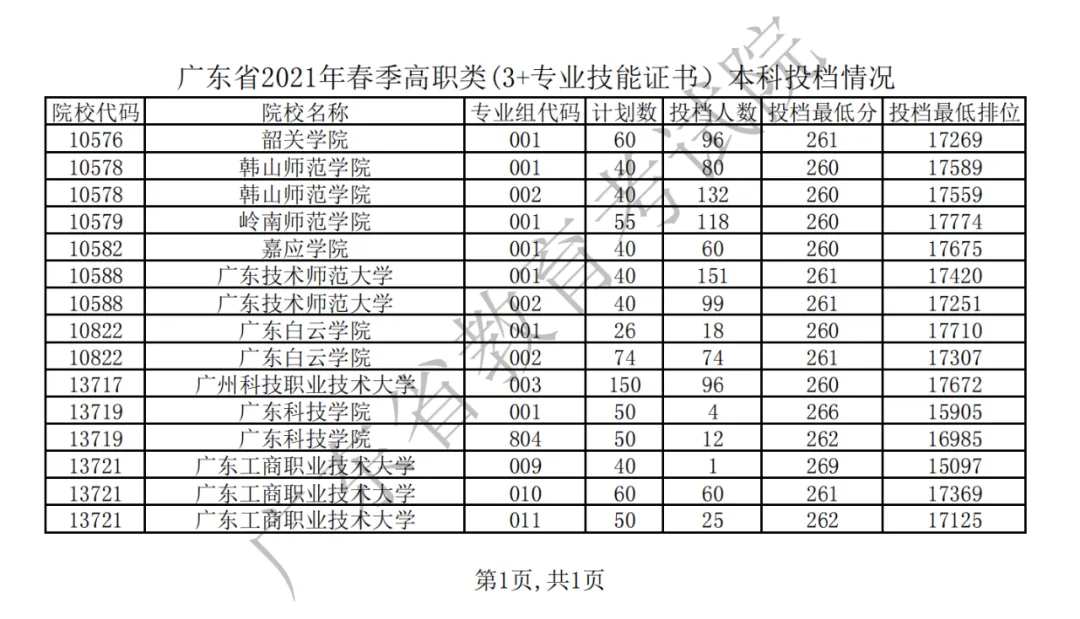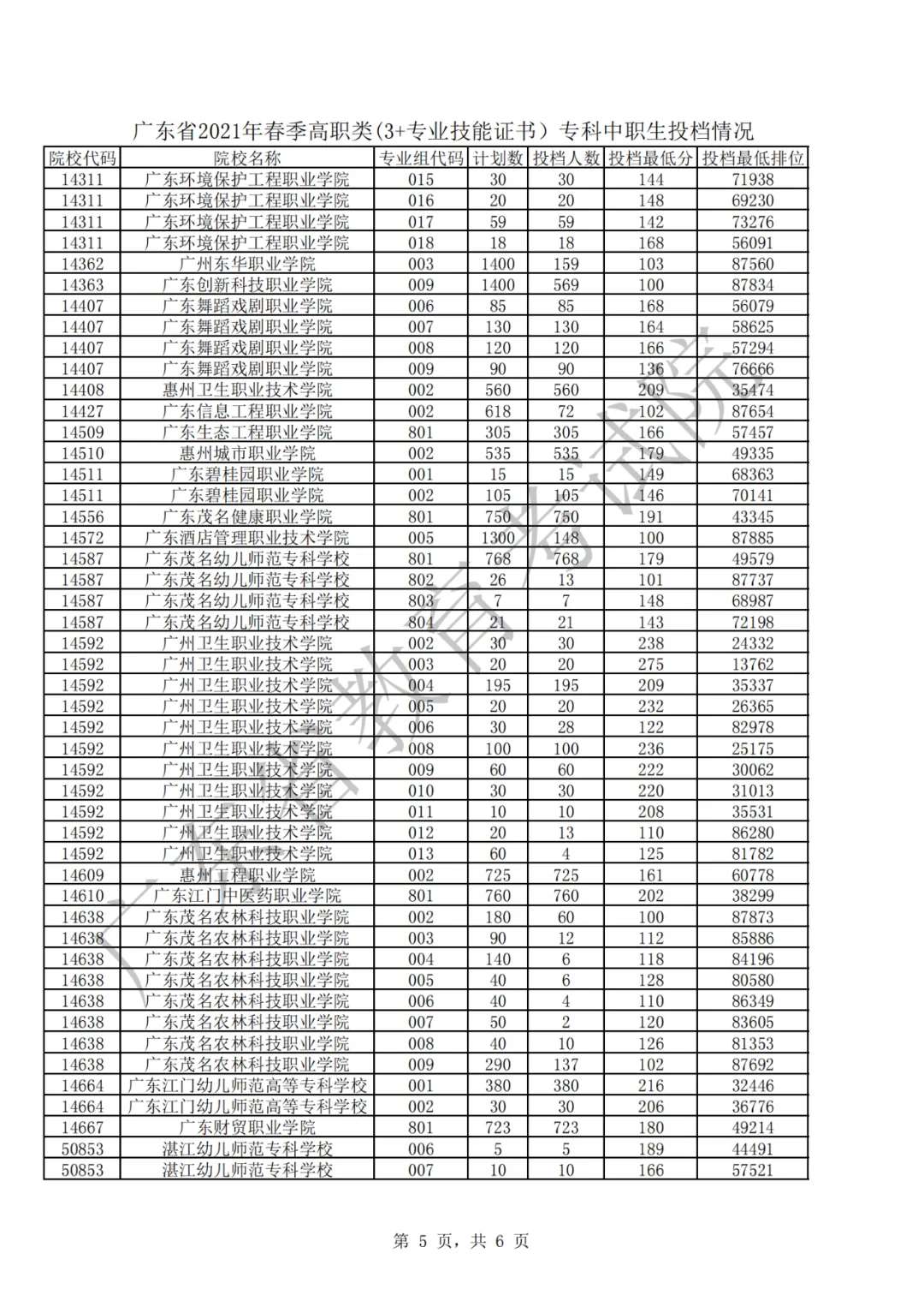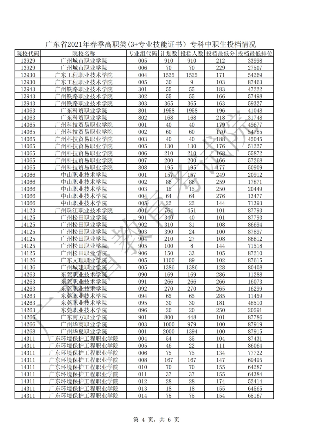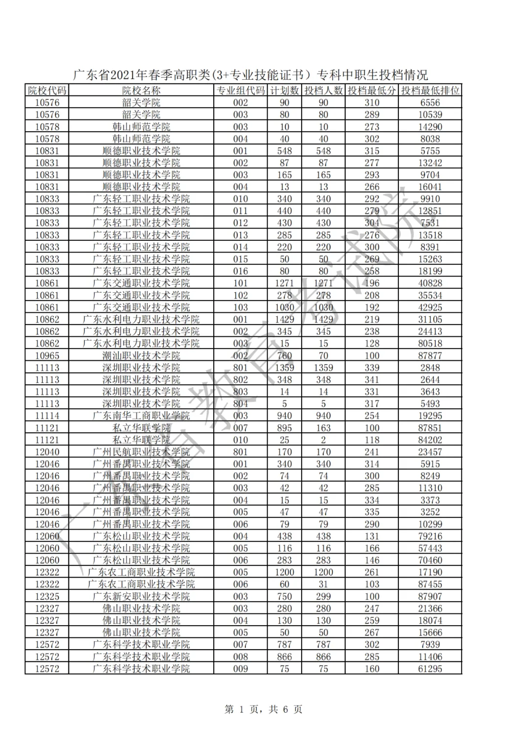 广东省2021年普通高校春季分类考试(“3+专业技能课程证书”)招生录取最低分数线如下: