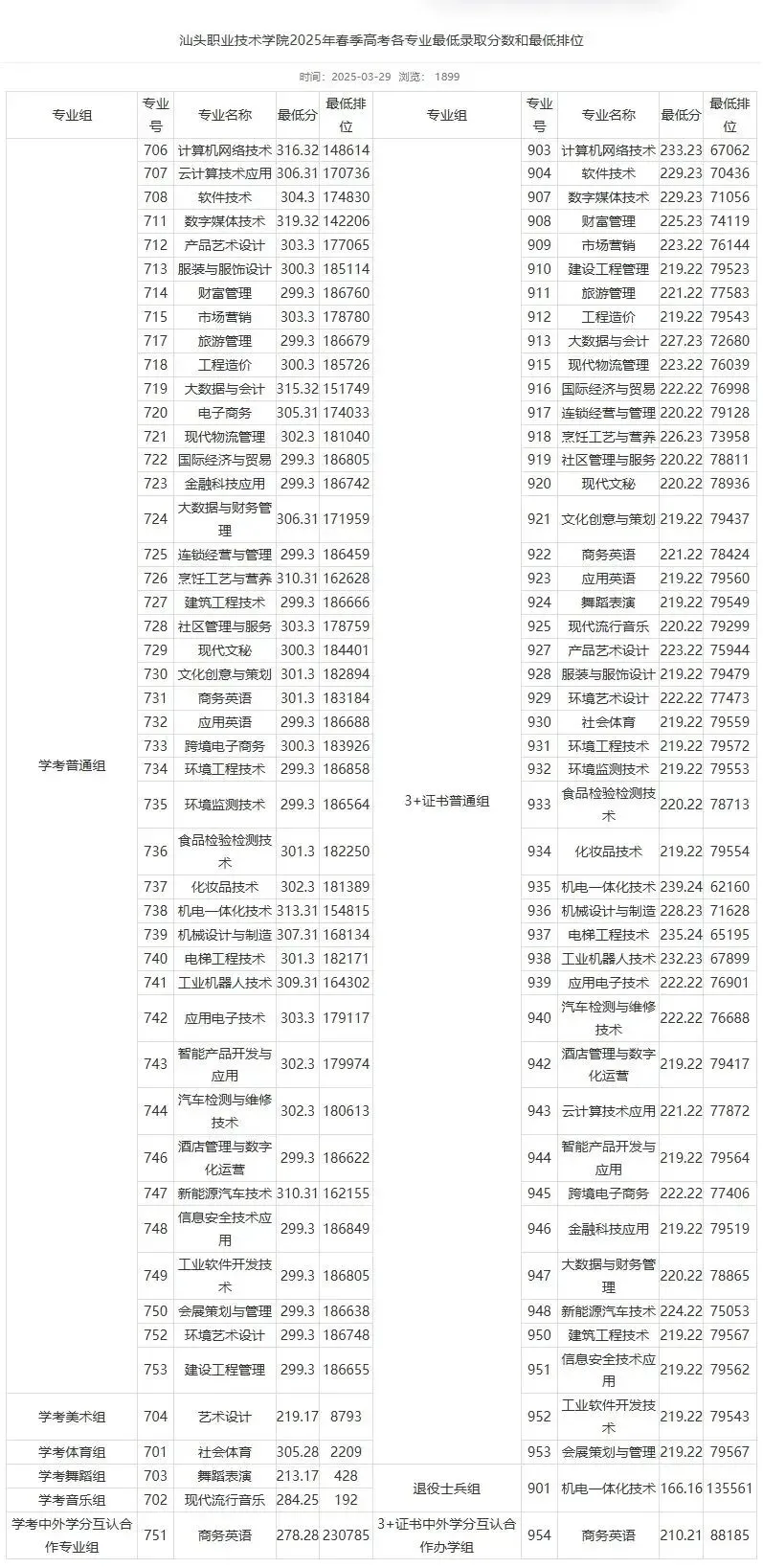 小编已经为大家整理好了2025年部分院校春考的专业录取分数和对应排位,快来看看你心仪的专业要考多少分吧!