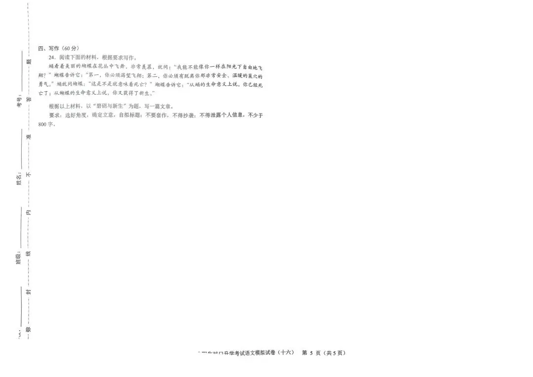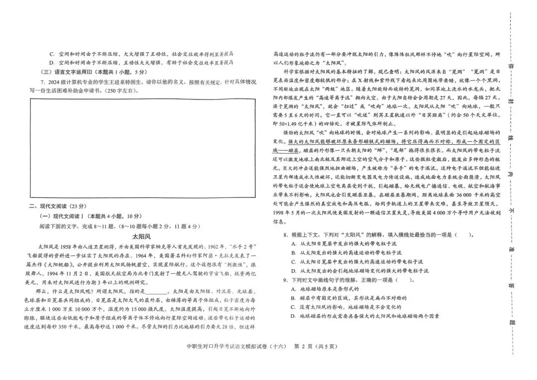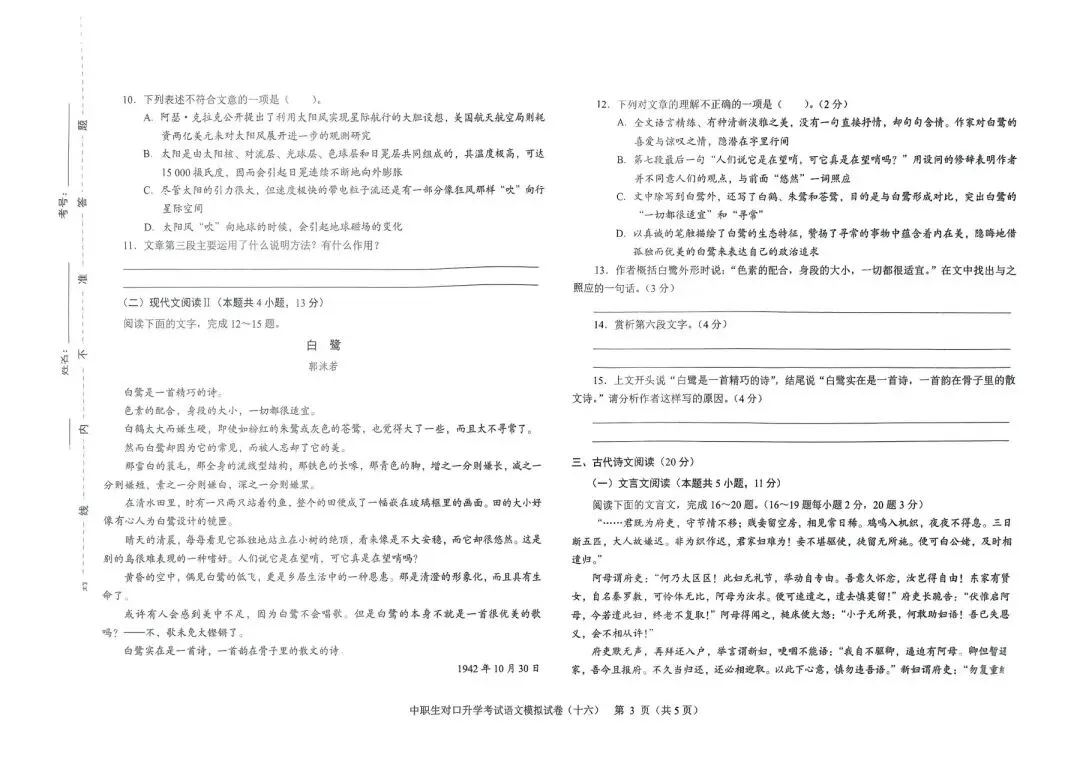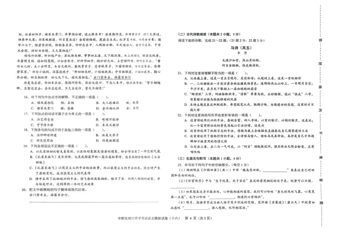 【语文】河北省中职生对口升学考试——语文模拟试卷(十六)