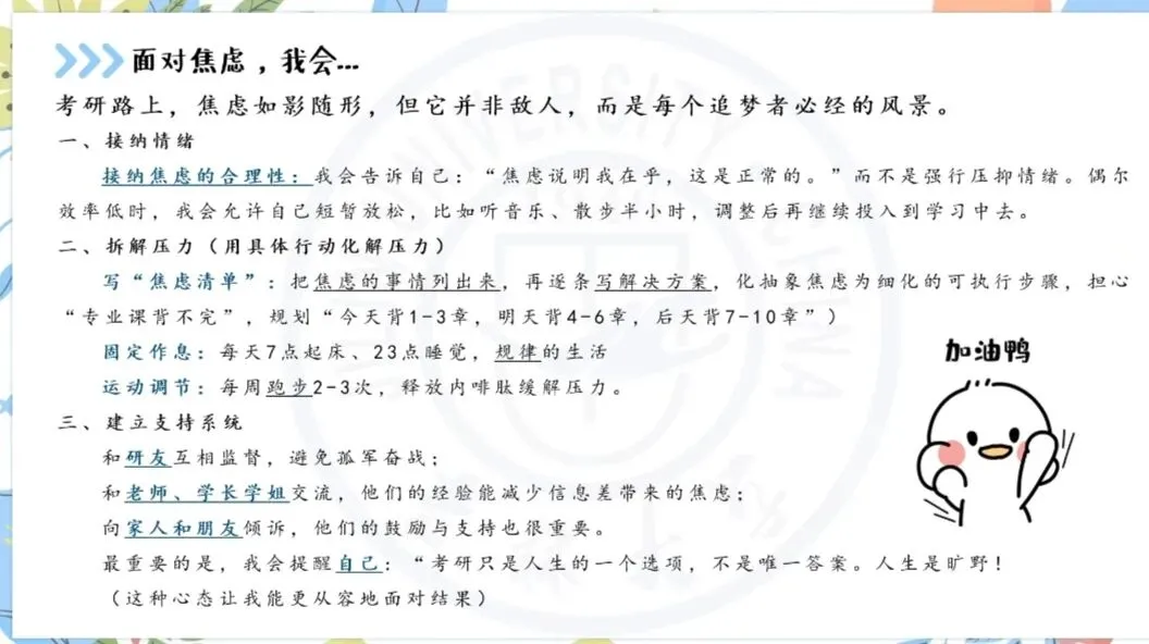 时光匆匆,一场干货满满的分享会在学子们的不舍与感谢中落下帷幕。屏幕的连接虽已断开,但学长学姐传递的经验与力量,以及同学们心中燃起的希望与斗志,却从未消散。考研之路,道阻且长,行则将至;就业之途,千条万绪,择善而从。无论你最终选择奔赴哪条赛道,都希望这场考研就业分享会,能成为你前行路上的一束微光,照亮你迷茫的时刻,给予你前行的勇气!