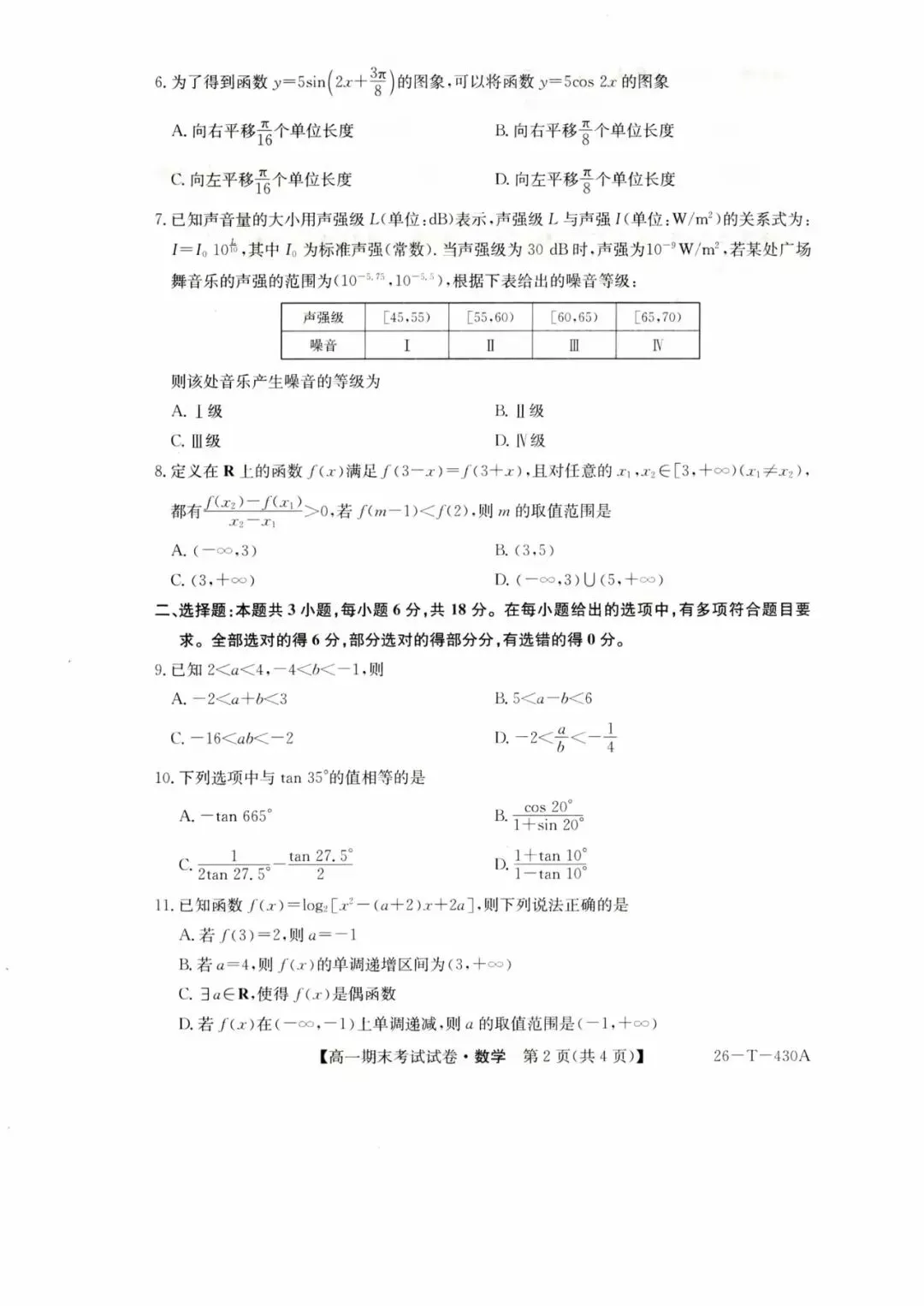 高一、高二期末考试题1(部分)(2026.1)