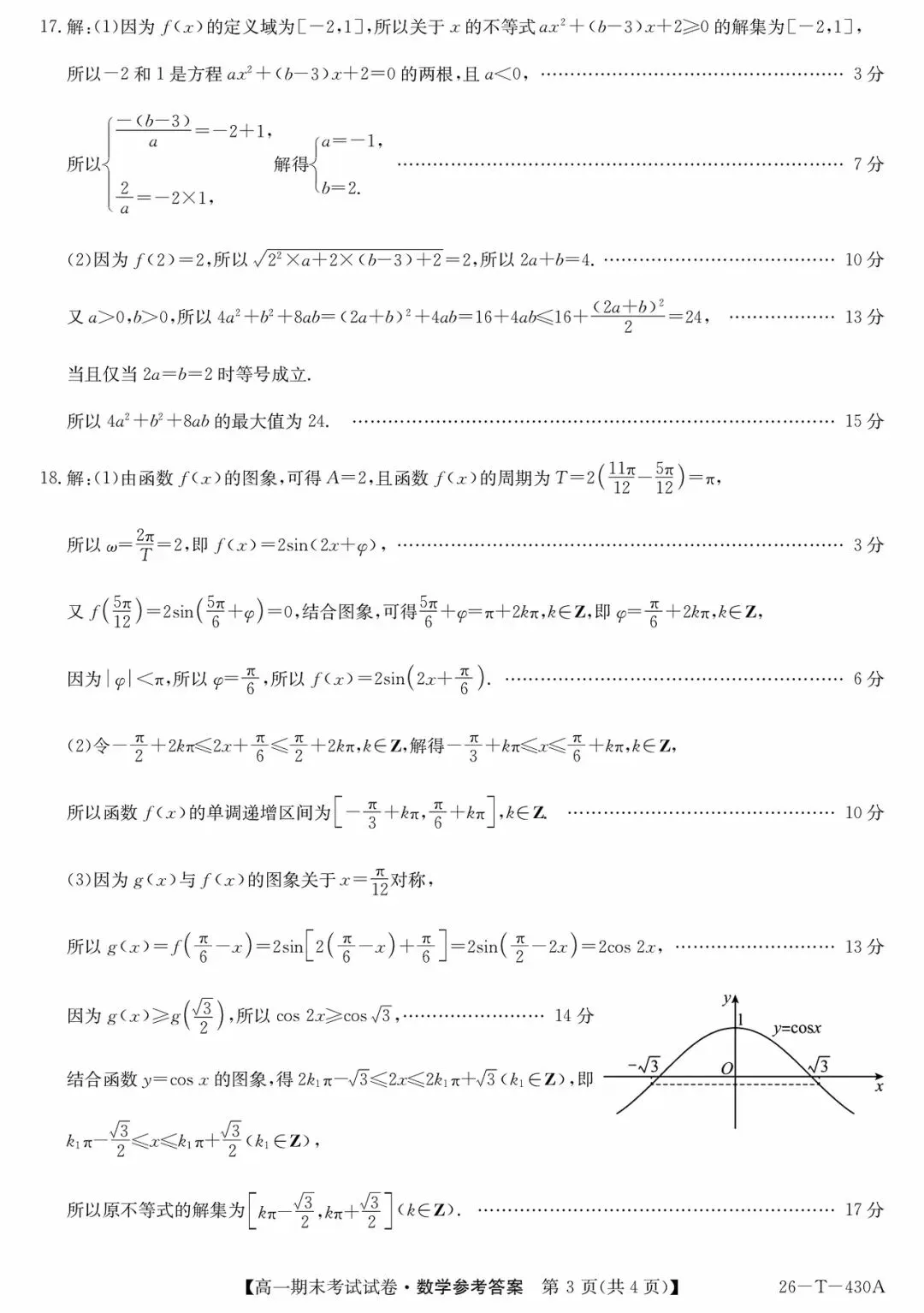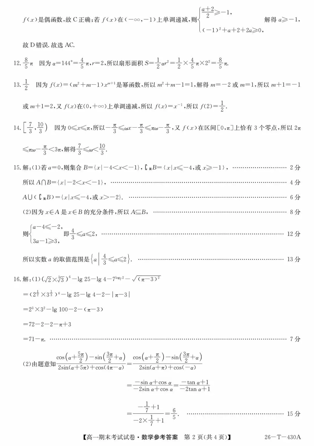 西安市部分高中2026高一上期末考试数学试题