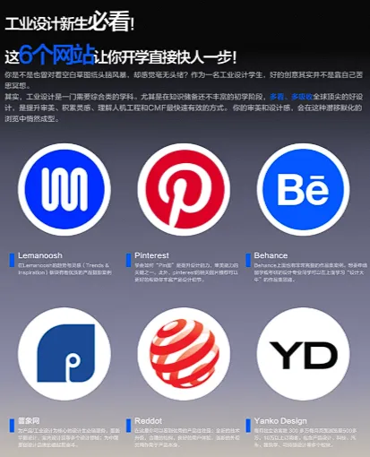 Pinterest:按 “工业设计作品集”“产品设计排版”“产品渲染图”“爆炸图设计” 等关键词搜索,可获取大量风格多样的参考案例,快速激发灵感;
