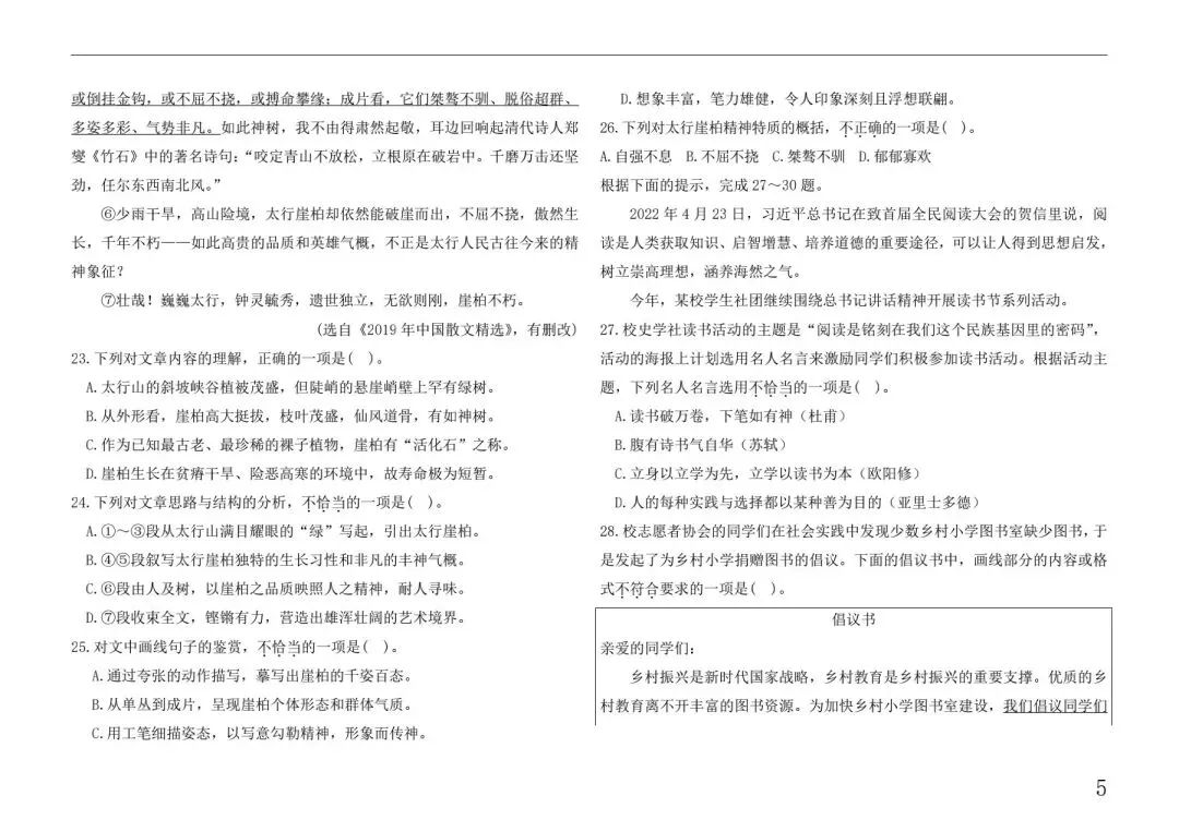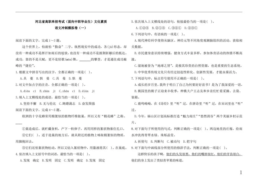 【语文】河北省高职单招考试(面向中职毕业生)文化素质·冲刺模拟卷(一)