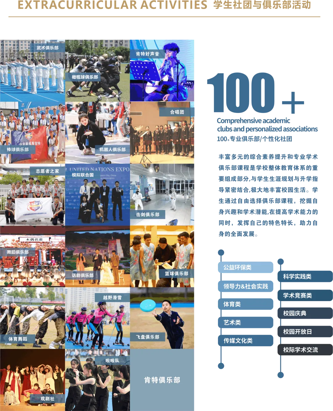 肯特普高除了关注引领学生的学习与成长,更加注重学生的全面发展,以丰富多彩、形式多元的校园活动及社团组织培养学生的领导能力、统筹能力、执行能力、变化能力以及团队协作能力,让孩子在缤纷璀璨、和谐优美的校园文化中茁壮成长。