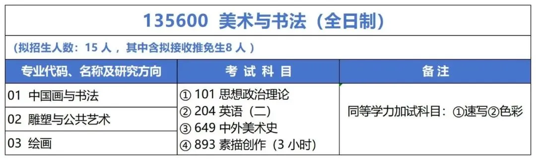 本专业聚焦绘画与公共艺术方向,旨在培育具备扎实专业知识、创新实践能力与良好艺术素养的人才。通过系统研习,学生能掌握中国画、油画、雕塑、壁画等专业技能,深入理解艺术理论,具备独立创作、研究以及在相关领域开展教学的能力。毕业生将在艺术创作、文化教育、艺术管理等领域发挥专长,推动美术与书法艺术的传承与创新。