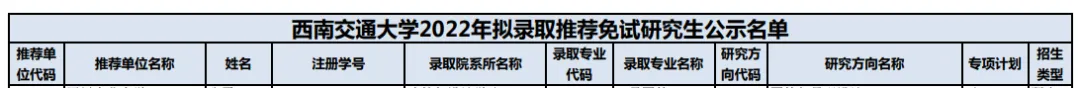 ▲2022年拟录取推免名单