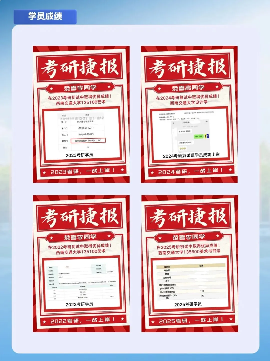 学员上岸西南交通大学、成都大学、四川师范大学、西华大学、西南民族大学、西华师范大学、四川轻化工大学、重庆邮电大学、兰州交通大学、哈尔滨师范大学、沈阳师范大学等等等......
