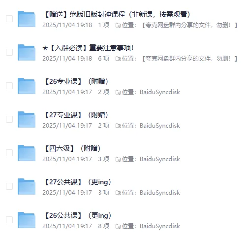 现在只要加入到网盘群,所有学姐整理的27考研资料课程合集,都能直接看到,而且是和学姐总网盘实时同步,我这边上传你们瞬间就能观看使用!
