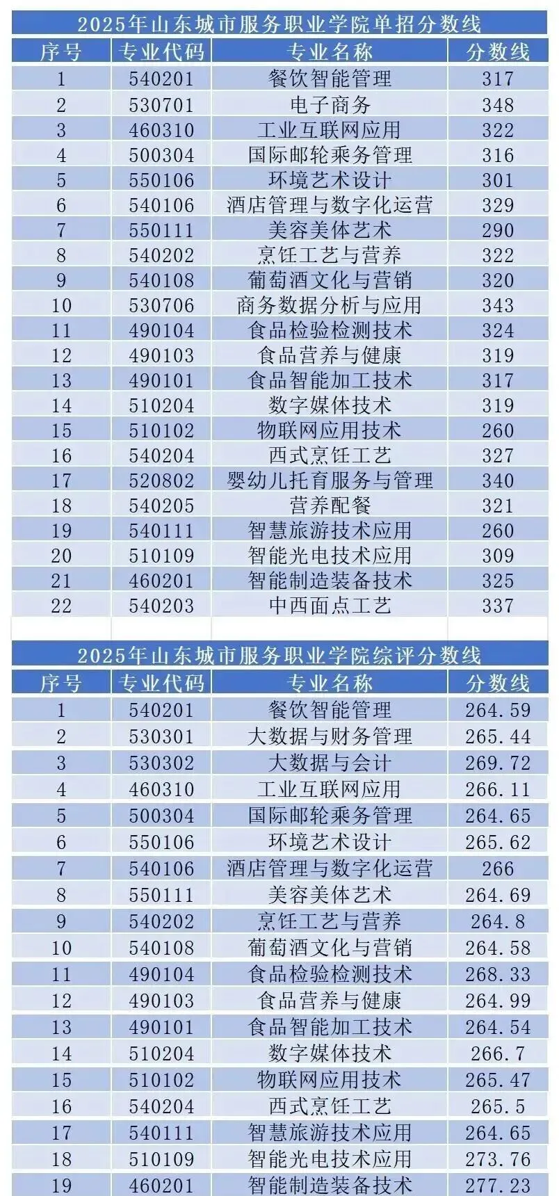 山东城市服务职业学院单招综评录取分数线: