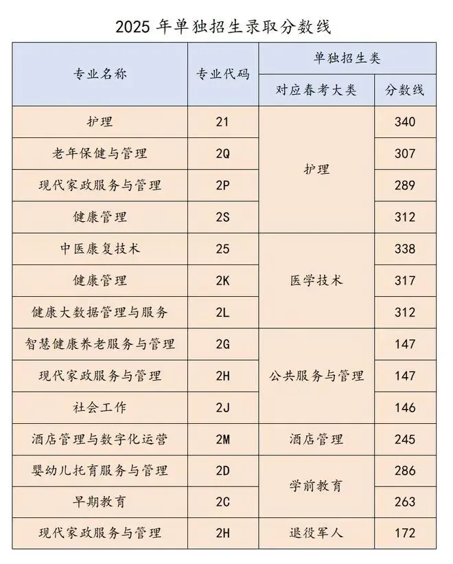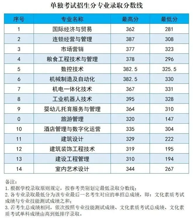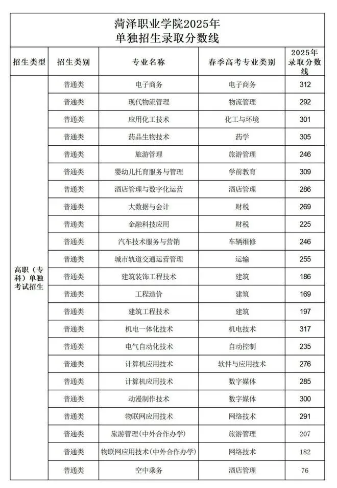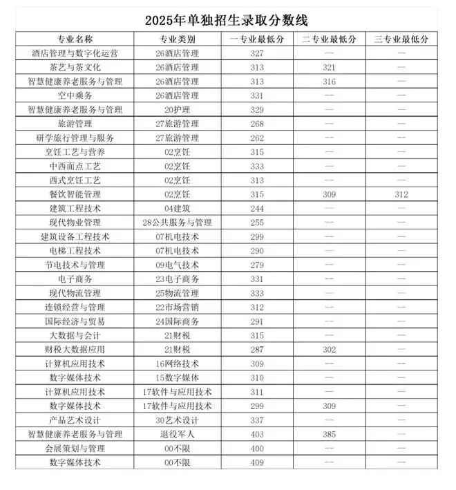 2025年单招录取分数线