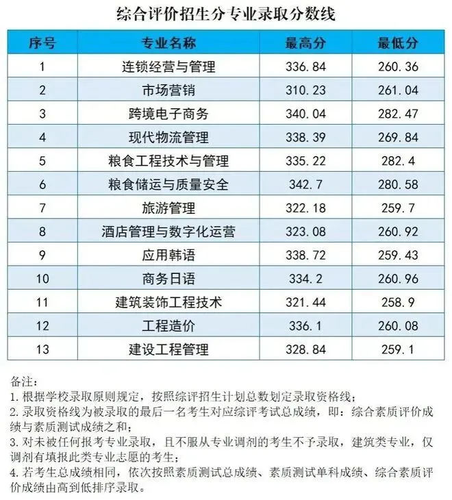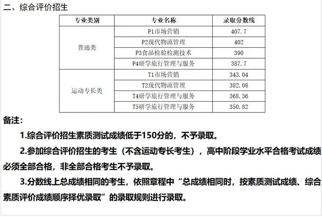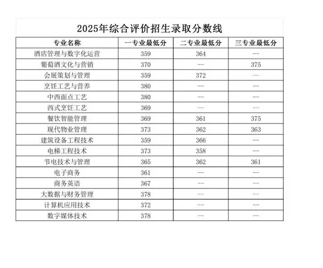 青岛酒店管理职业技术学院单招综评录取分数线: