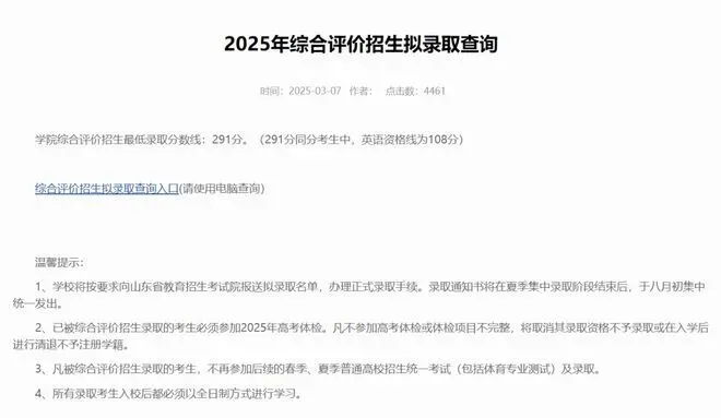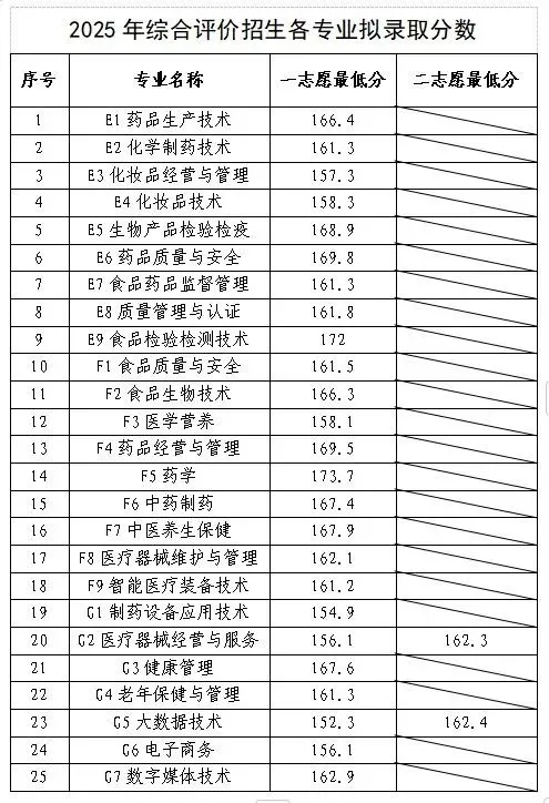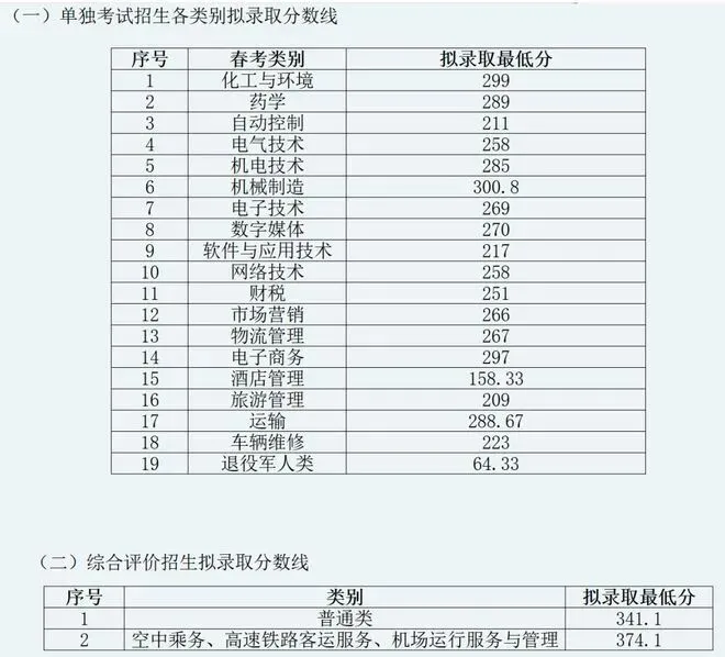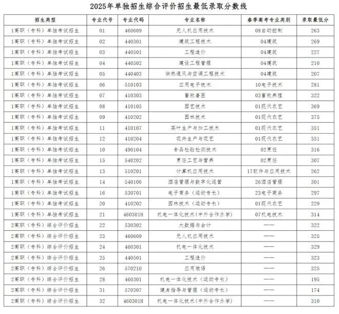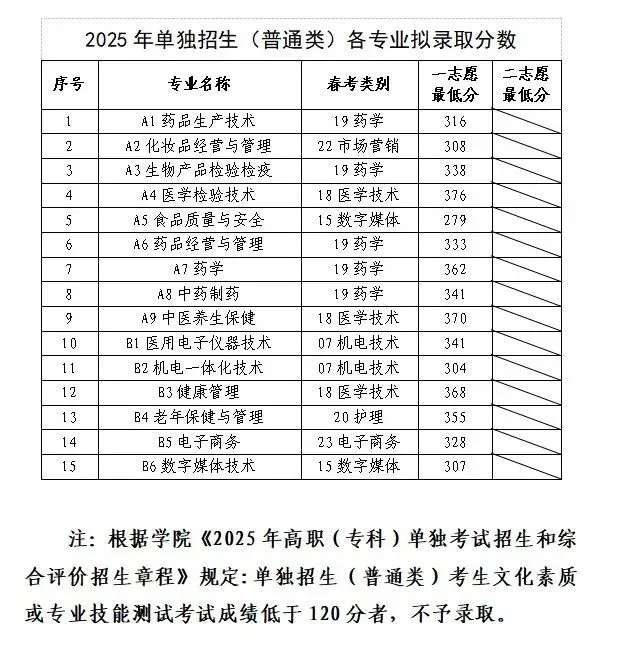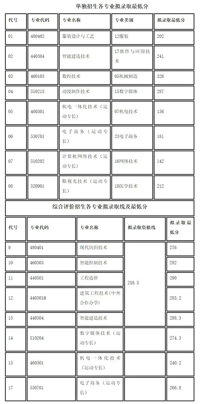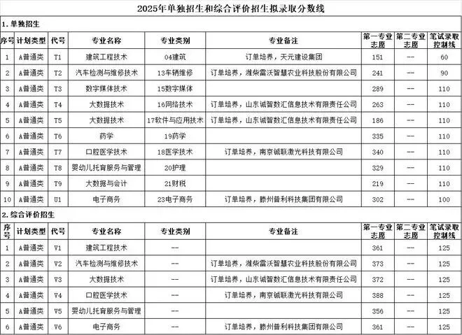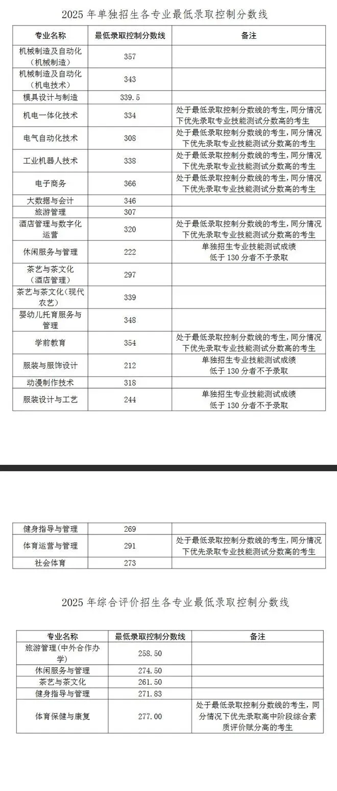 2025年单独招生、综合评价招生拟录取分数线: