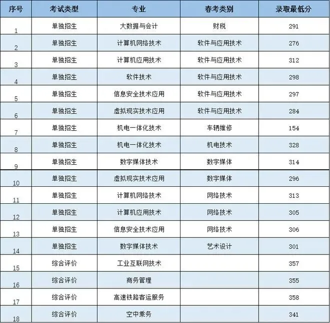 德州职业技术学院单招综评录取分数线: