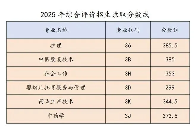 山东医学高等专科学校单招综评录取分数线: