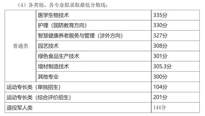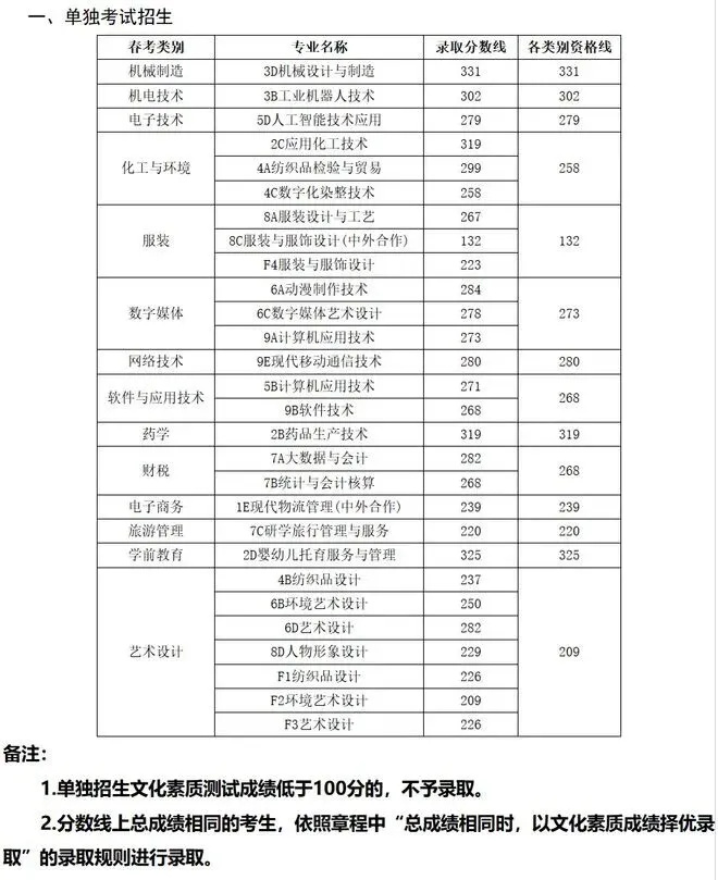 单招综评录取分数线: