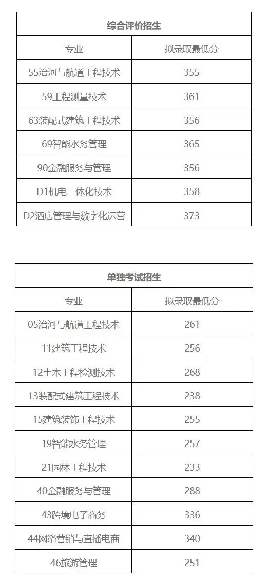 山东水利职业学院单招综评录取分数线: