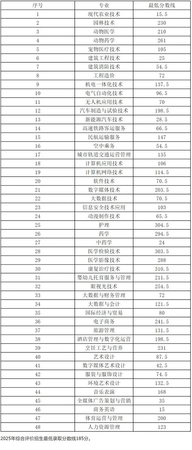 2025年单招综评录取分数线: