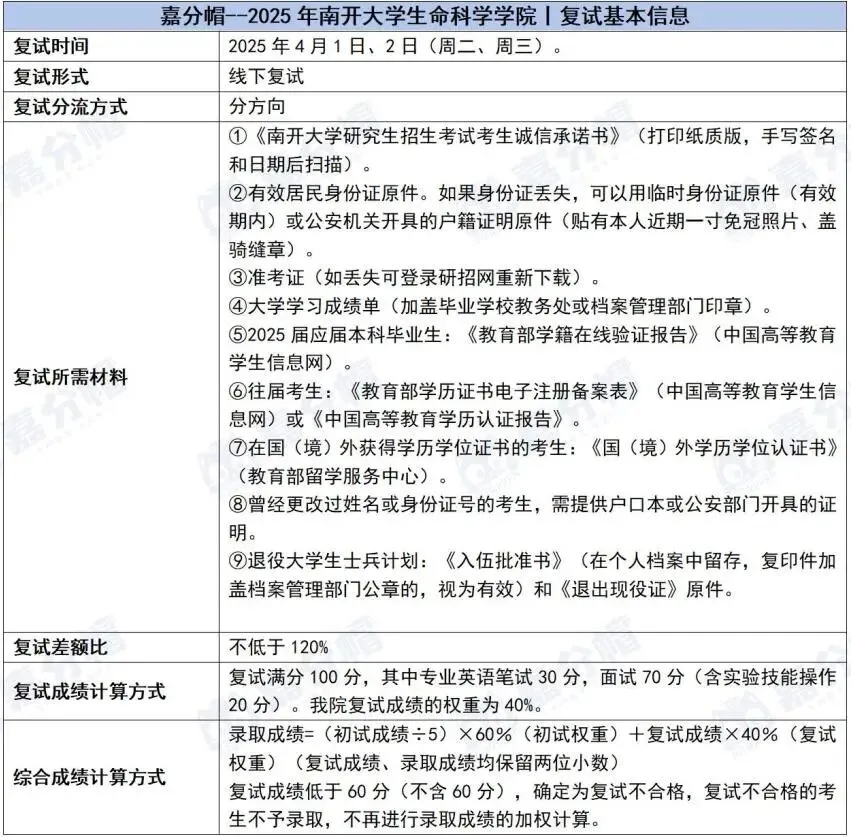 26生物考研|南开大学复试指南(内含复试全流程、招录数据、分数线、所需材料等)