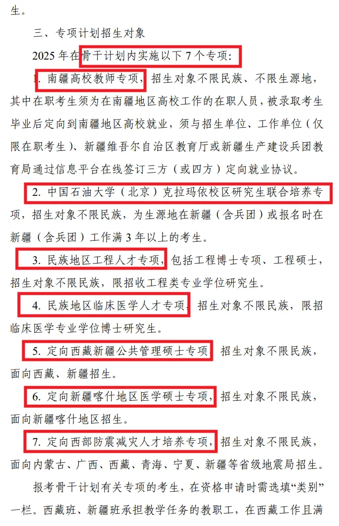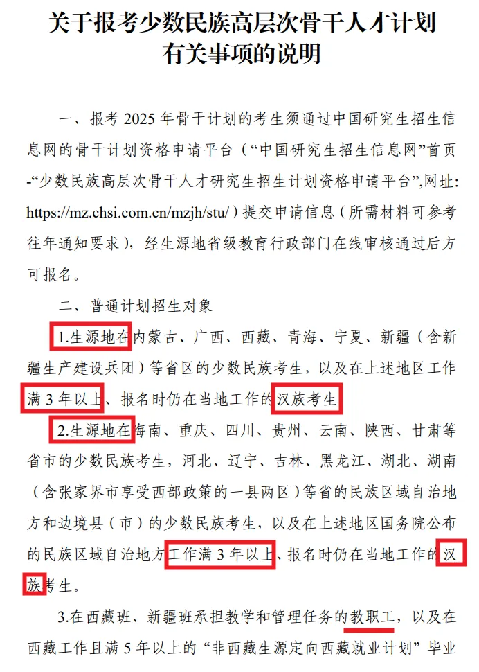 另关于少干计划的调剂:报考“少数民族高层次骨干人才计划”的考生不得调剂到该计划以外录取;未报考的不得调剂入该计划录取。