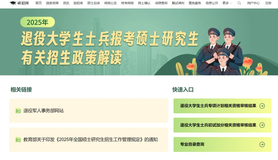 研招网退役大学生士兵专项招生专题: