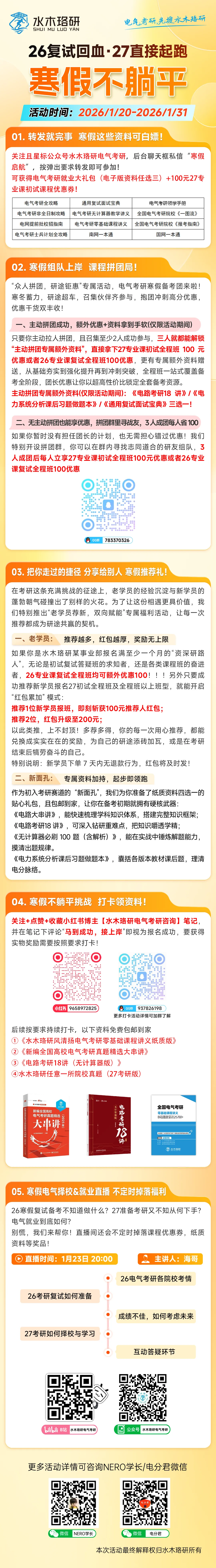 众人拼团,研途钜惠”专属活动,电气考研寒假备考团来啦!寒冬蓄力,研途超车,召集伙伴齐参与,抱团冲刺高分优惠,优惠干货双丰收!