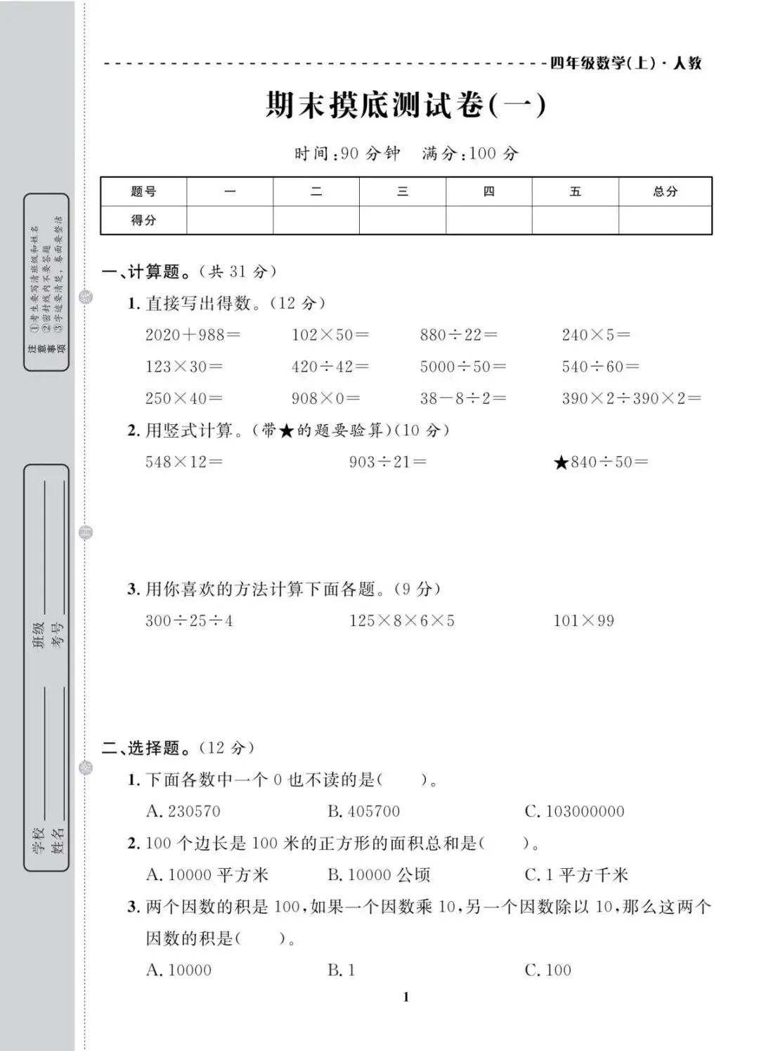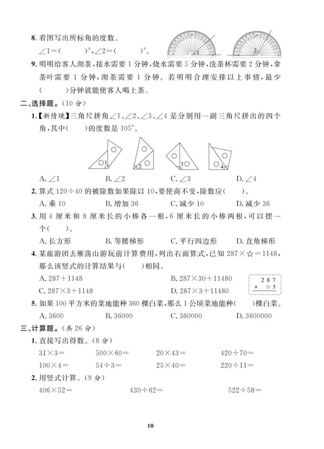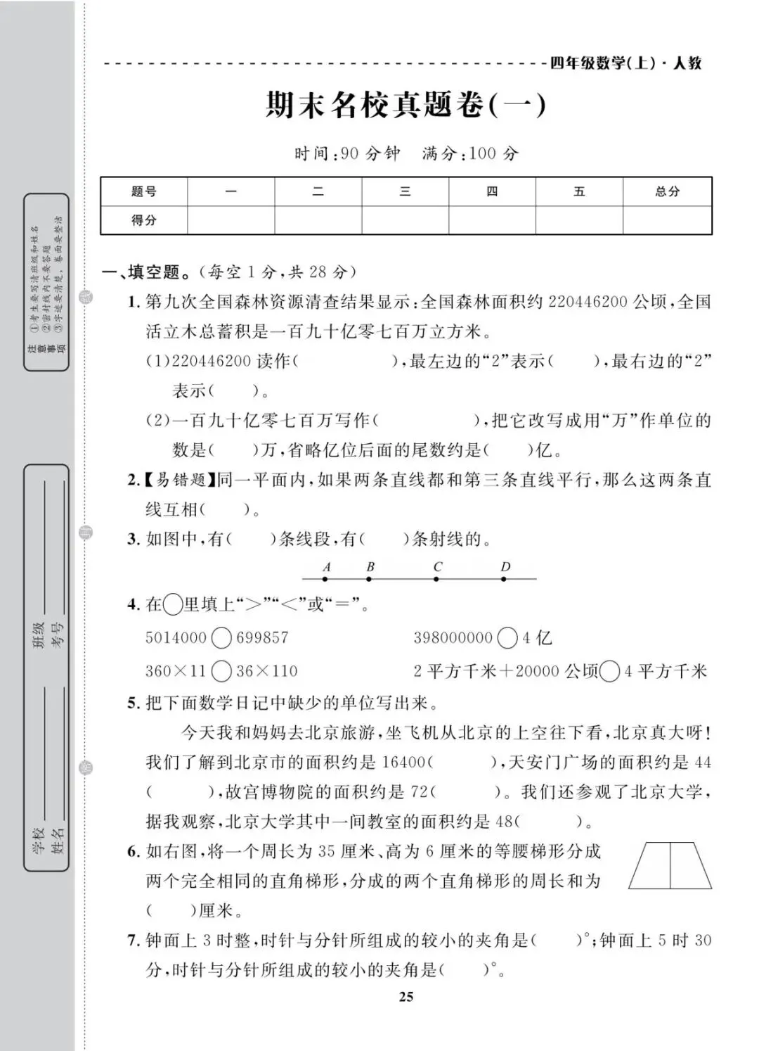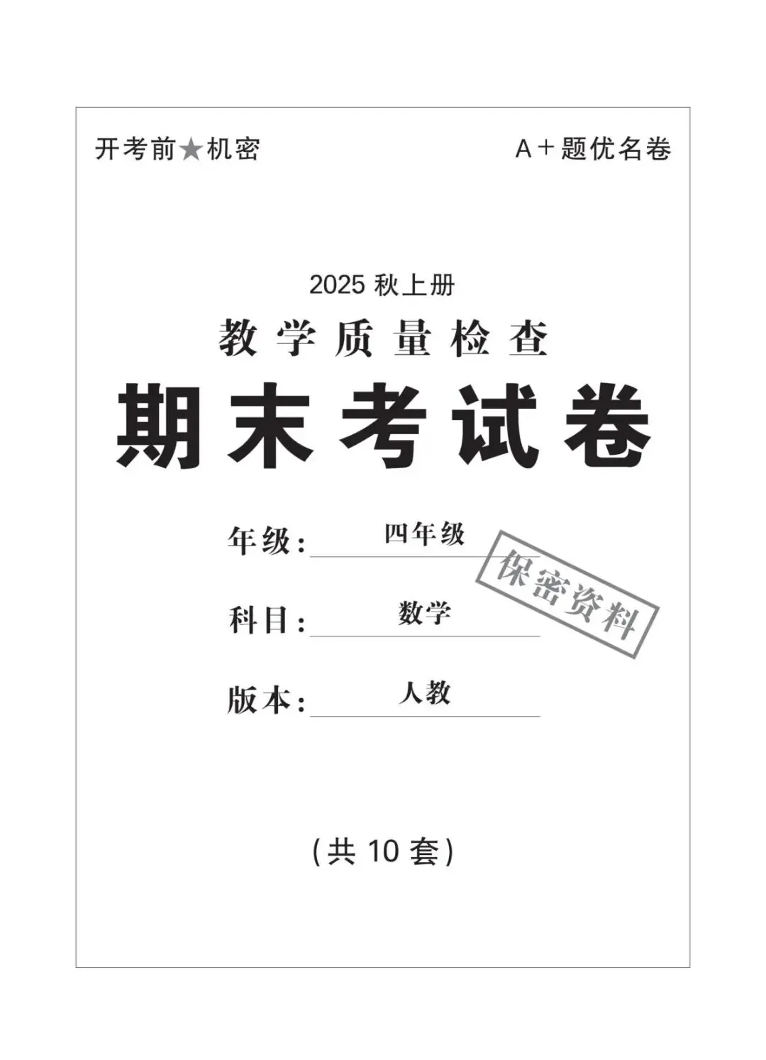 人教版四年级上册数学期末考试试卷共10套,含有答案,电子版可下载可打印,这份四年级上册数学期末真题复习冲刺试卷,紧扣大数认识、角的度量、三位数乘两位数等核心考点,题型分基础巩固、能力提升两大梯度,打印出来每天练一套,稳步提升应试能力!(温馨提示:文末有完整电子版领取方法)