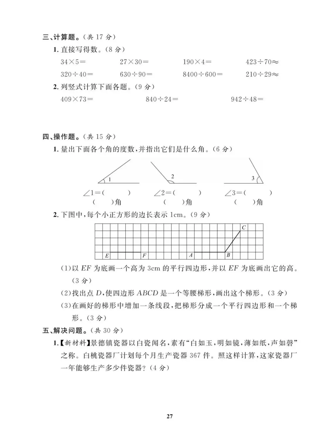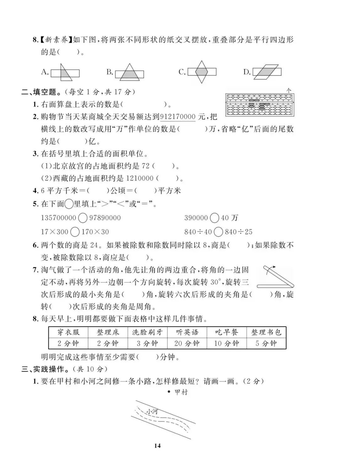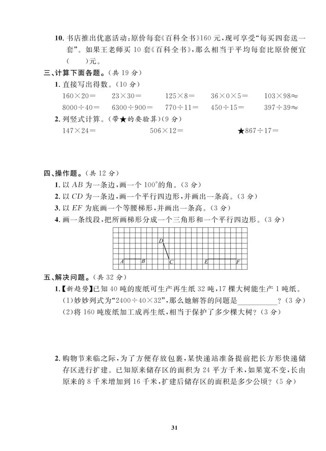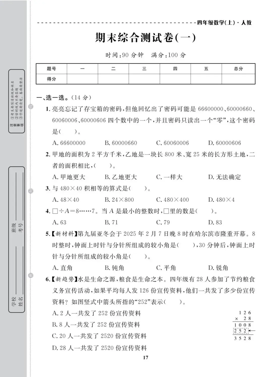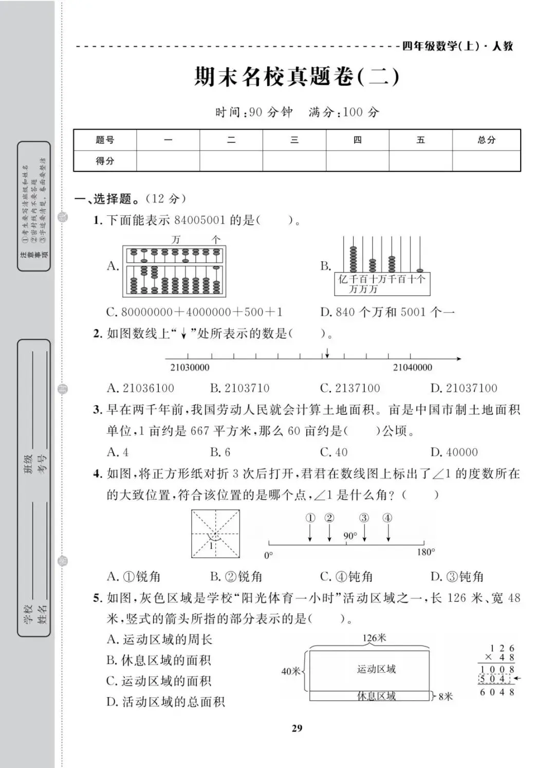 人教版四年级上册数学期末考试试卷共10套,含有答案,电子版可下载可打印,这份四年级上册数学期末真题复习冲刺试卷,紧扣大数认识、角的度量、三位数乘两位数等核心考点,题型分基础巩固、能力提升两大梯度,打印出来每天练一套,稳步提升应试能力!(温馨提示:文末有完整电子版领取方法)