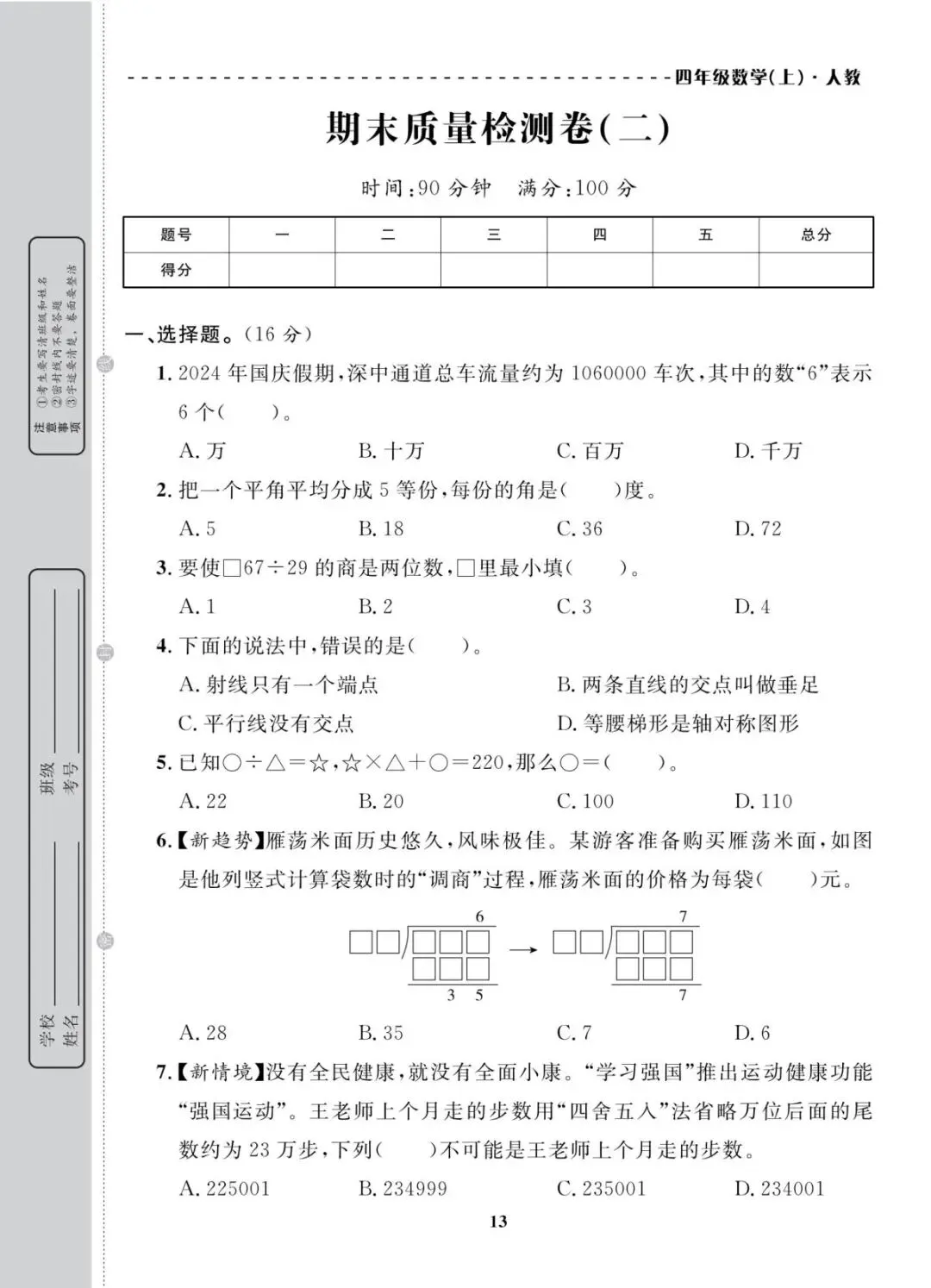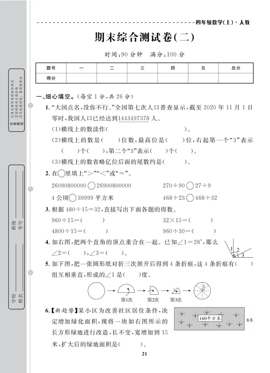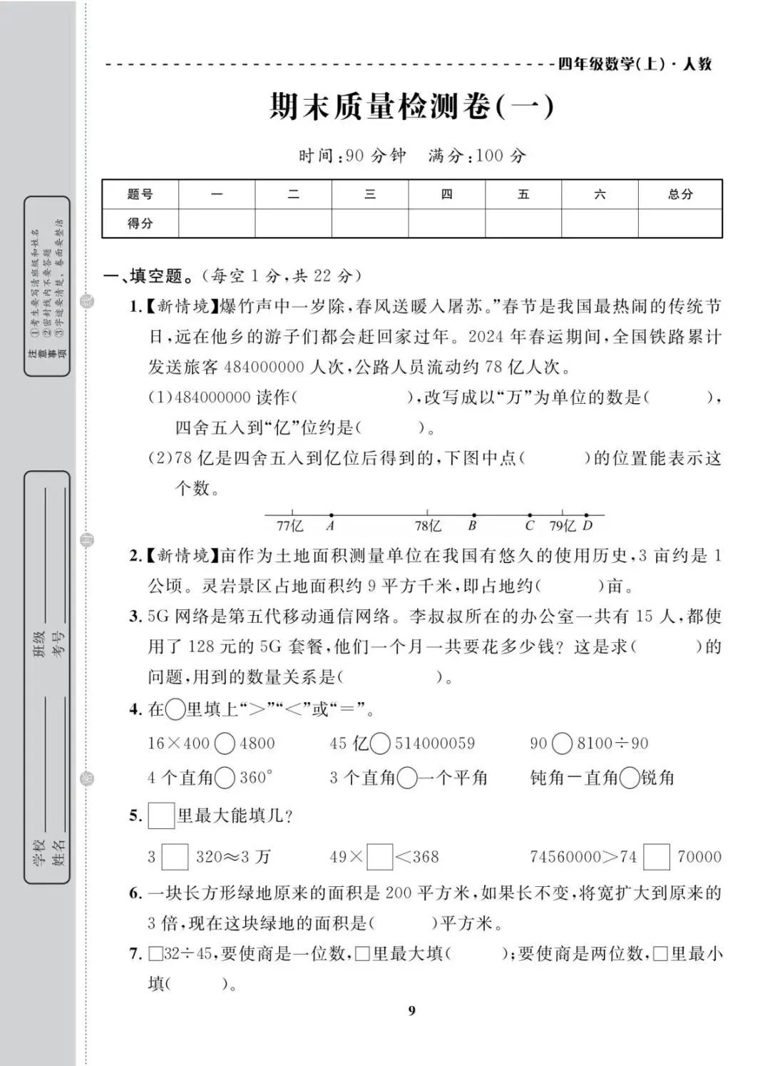 人教版|四年级上册学期末考试试卷 共10套(带答案)电子版可打印