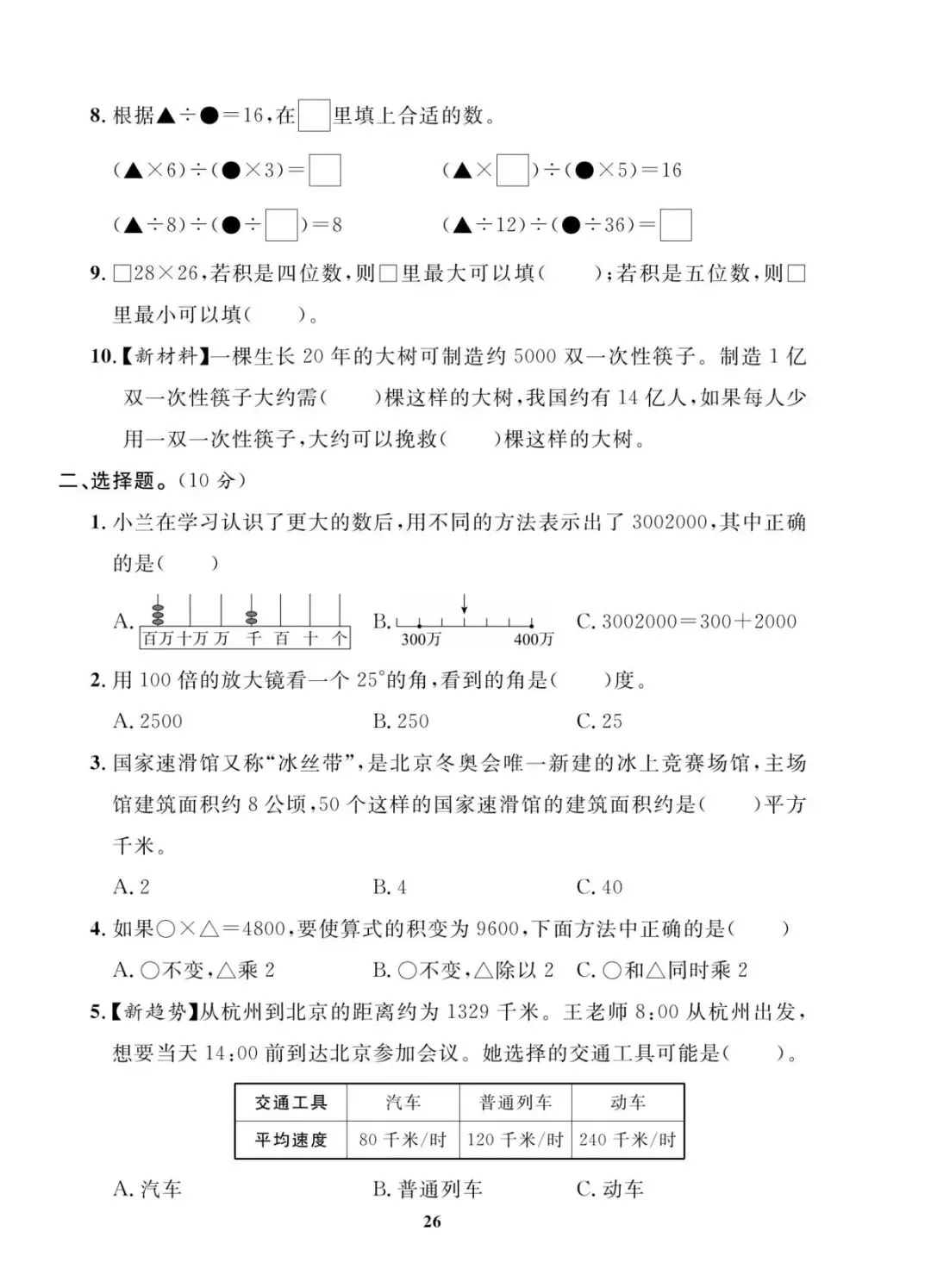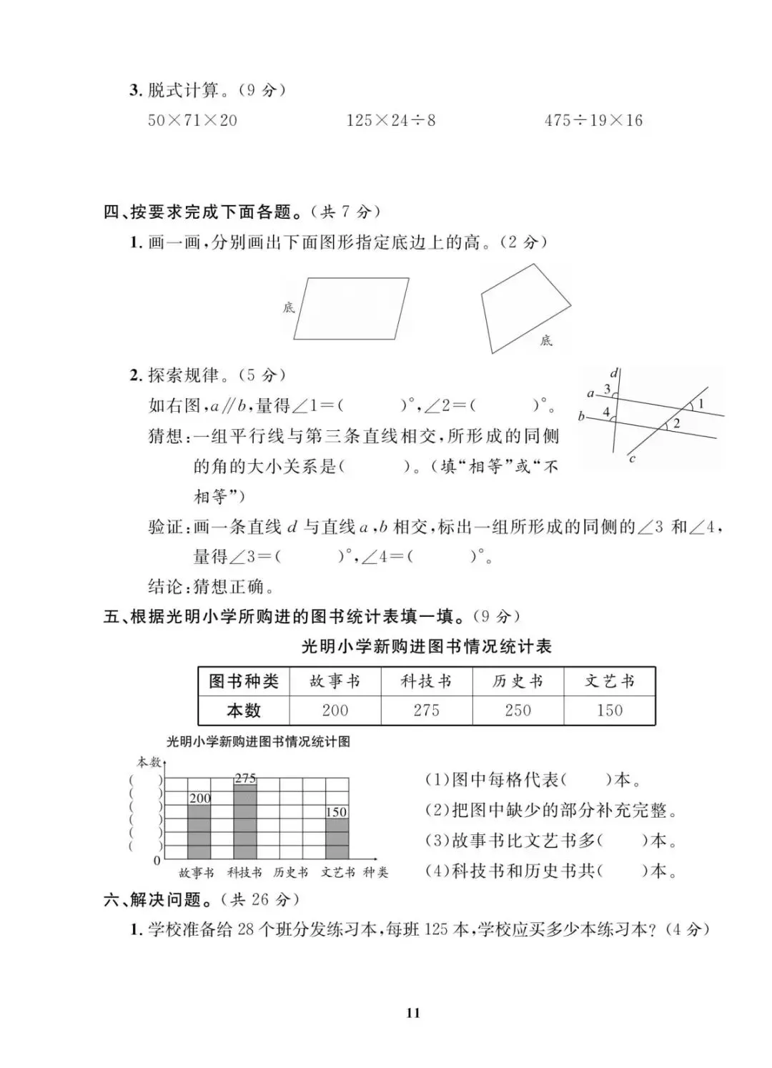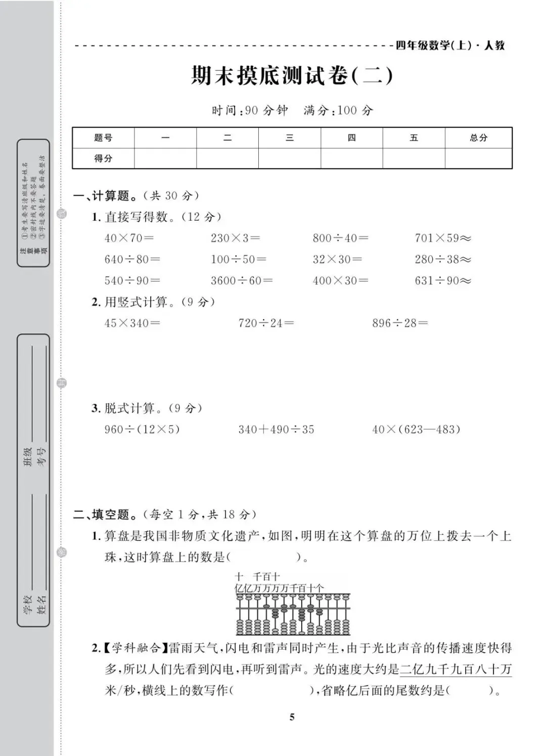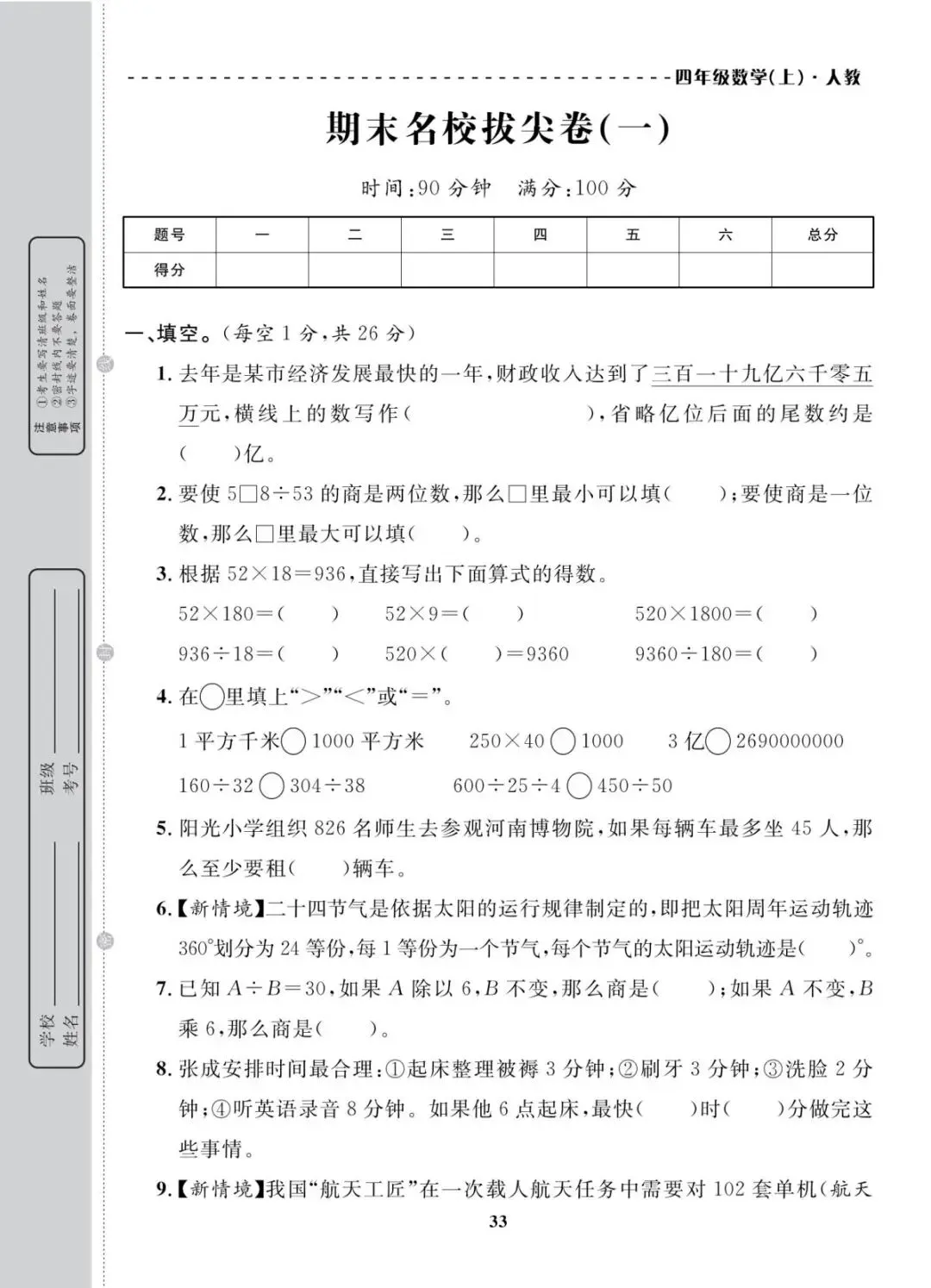 人教版|四年级上册学期末考试试卷 共10套(带答案)电子版可打印
