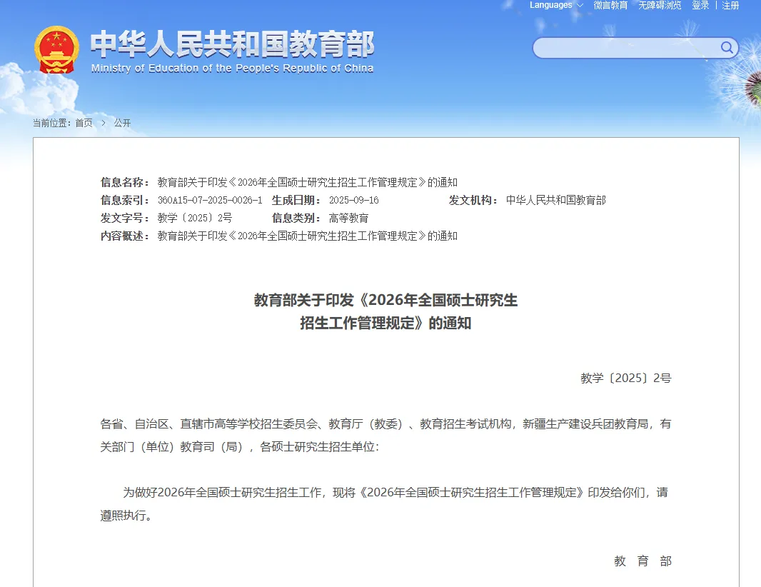 2025年10月,教育部发布了《2026年全国硕士研究生招生工作管理规定》,里面对于复试、调剂等方面的政策进行了新的调整,对大家来说是机遇也是挑战。这里给大家汇总一些关键信息,并给出相应的准备建议,希望能够助力26考研的同学们顺利上岸。