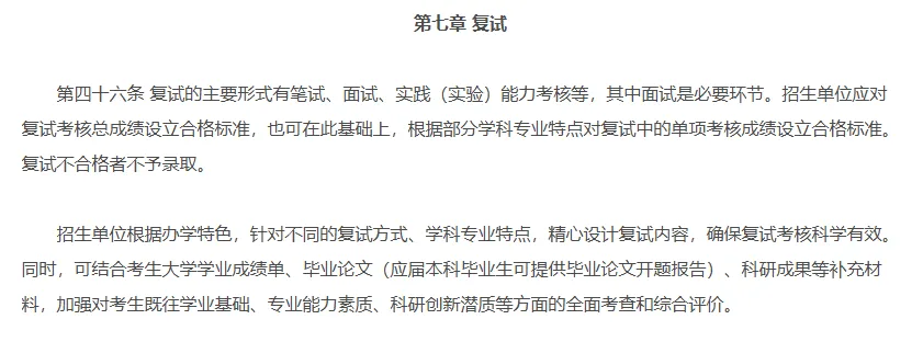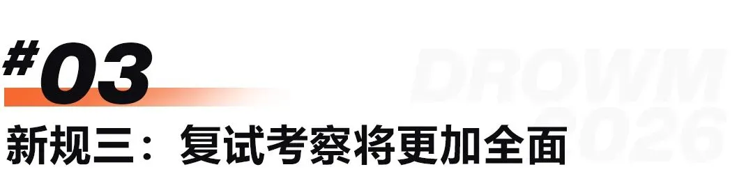 《26年新规》中,对于招生单位的复试环节提出了新的要求:既要注重考生的学业知识,也要注重考生的专业能力素质和科研创新潜质;既要注重考生的考试成绩,也要注重考生的一贯学业表现。