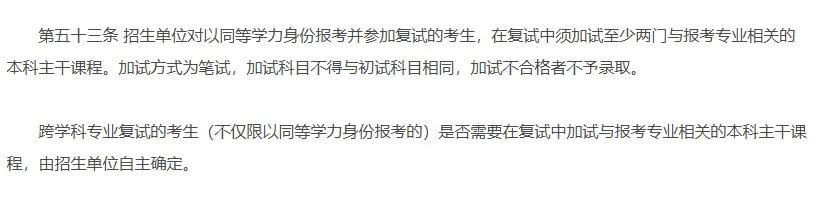 《26年新规》中指出,对于跨学科专业报考的考生,招生单位可进行笔试加试,加试科目不得与初试科目相同,加试不合格者不予录取。
