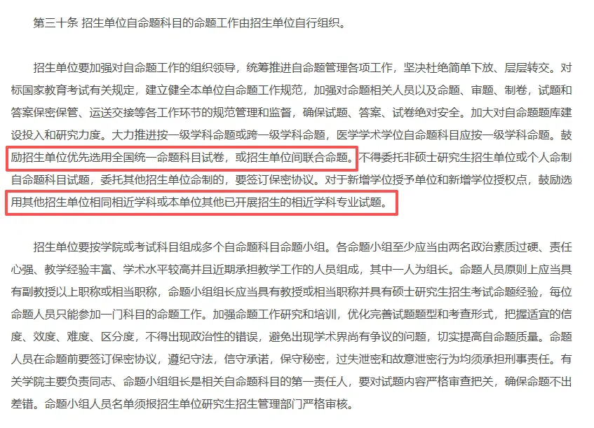 此外,教育部对于统一命题的重视程度也进一步提高。24年的表述是“鼓励招生单位选用全国统一命题科目试卷”,26年则增加了“优先”两个字。