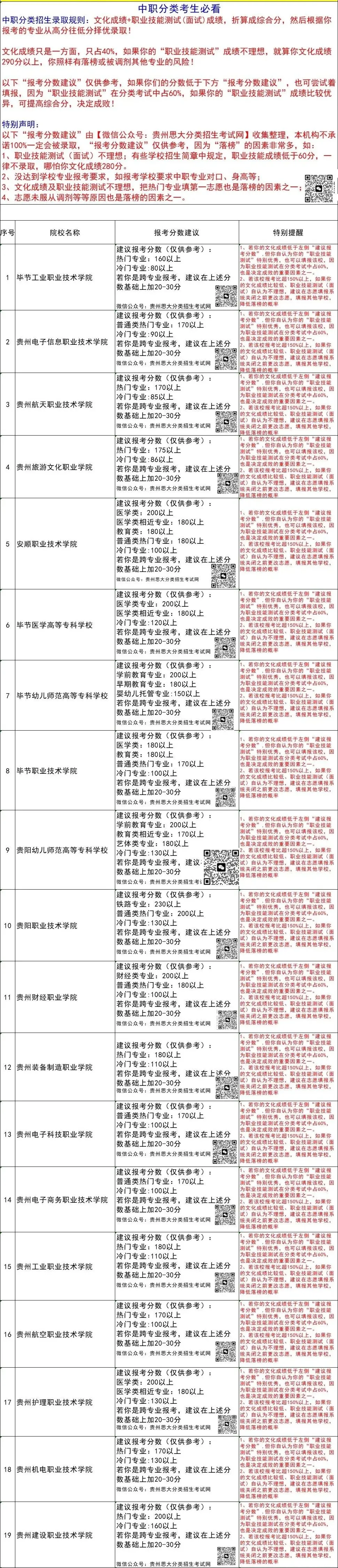 2026贵州高职分类考试52所公办院校中职生文化成绩报考分数建议