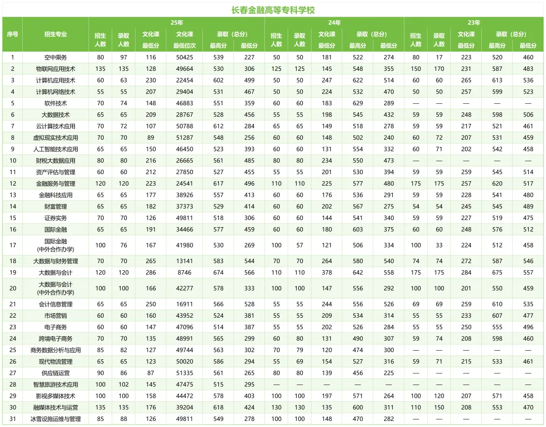 >录取分数线 | 长春金融高等专科学校(单招)