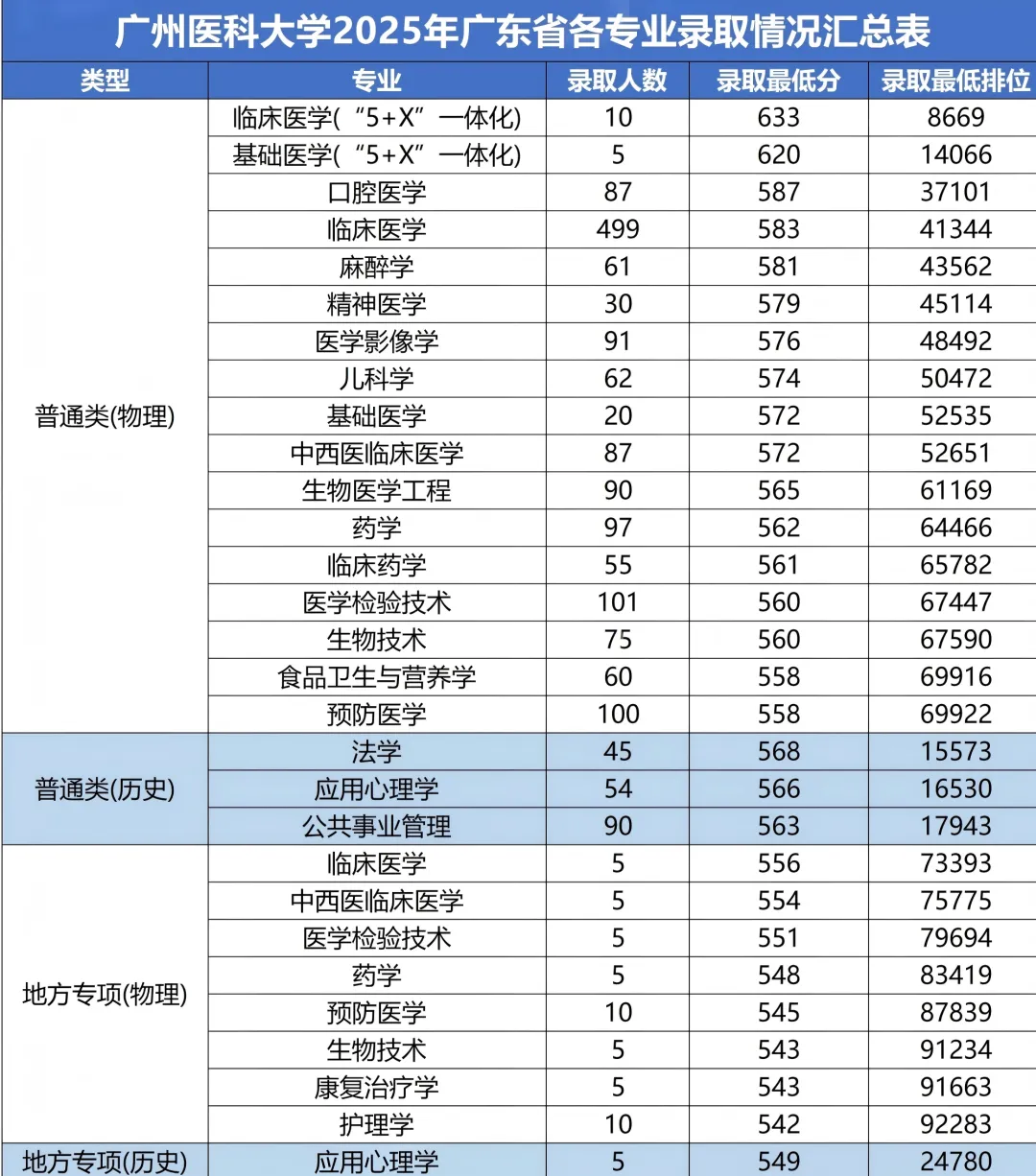 广州医科大学2025年各专业录取分数线!
