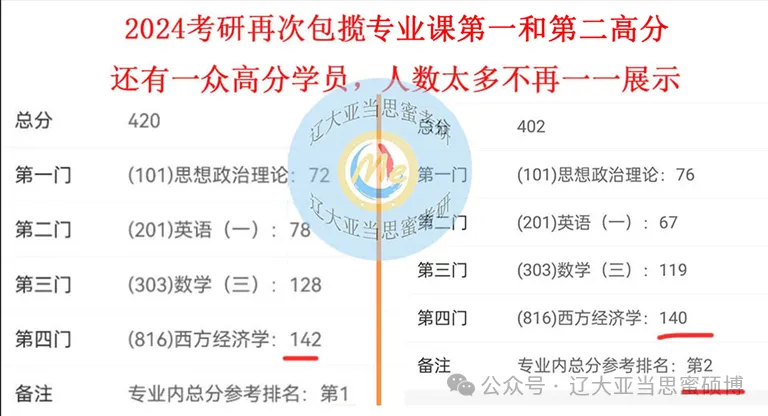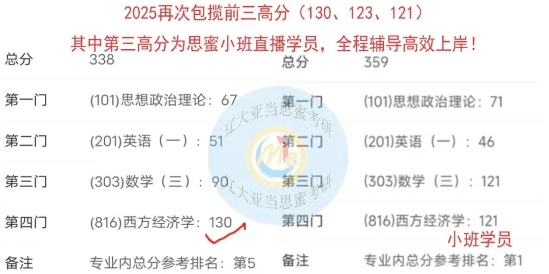 思蜜816大队:主讲老师分别由Leo学长(17考研西经专业课第一143;考博经济学80+);Su学姐(本、硕、博均为辽大经院,考研学硕历史最高分427,专业课145,数学144;考博专业第一!)领衔一众高分兼具优秀表达能力的同学组成,具体有21专业课最高分(137)朱同学、23高分(130+)陈同学、24专业课最高分(142)秦同学、24专业课高分(140)刘同学等组成。25专业课最高分(130)灿灿学姐、经院专业课最高分121、同时也为25考研小班学院的王学姐及区域专业西经117兰学姐等,堪称辽大816西方经济学考研辅导第一团队!