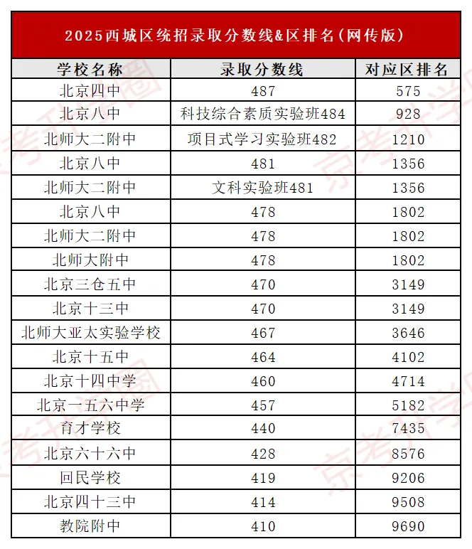2026年海淀、西城、东城区初三年级第一学期期末考区排公布了,咱家孩子现在的分数大概能上哪所高中?搜集了多区热门高中校录取分数线,来看距离目标校还有多少分的差距?