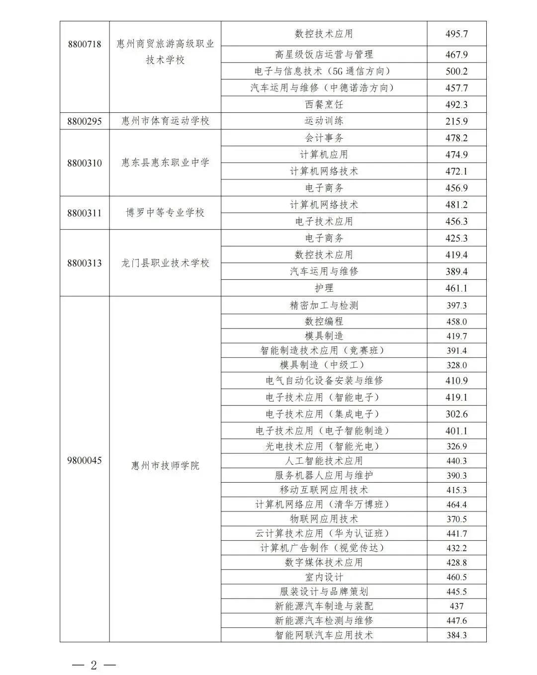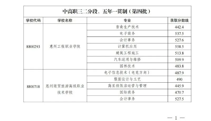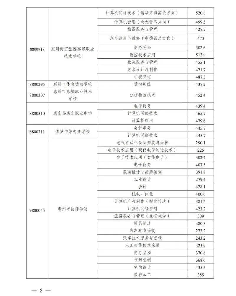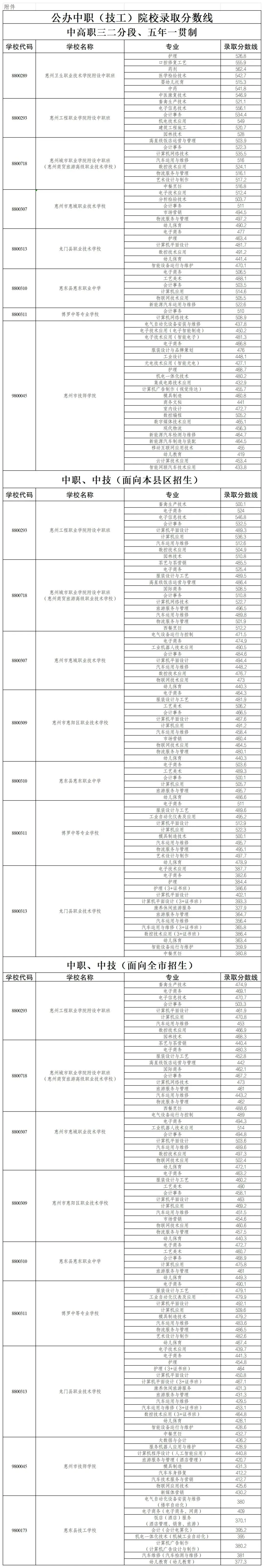 >2022-2025年惠州中考录取分数线汇总(中职版)